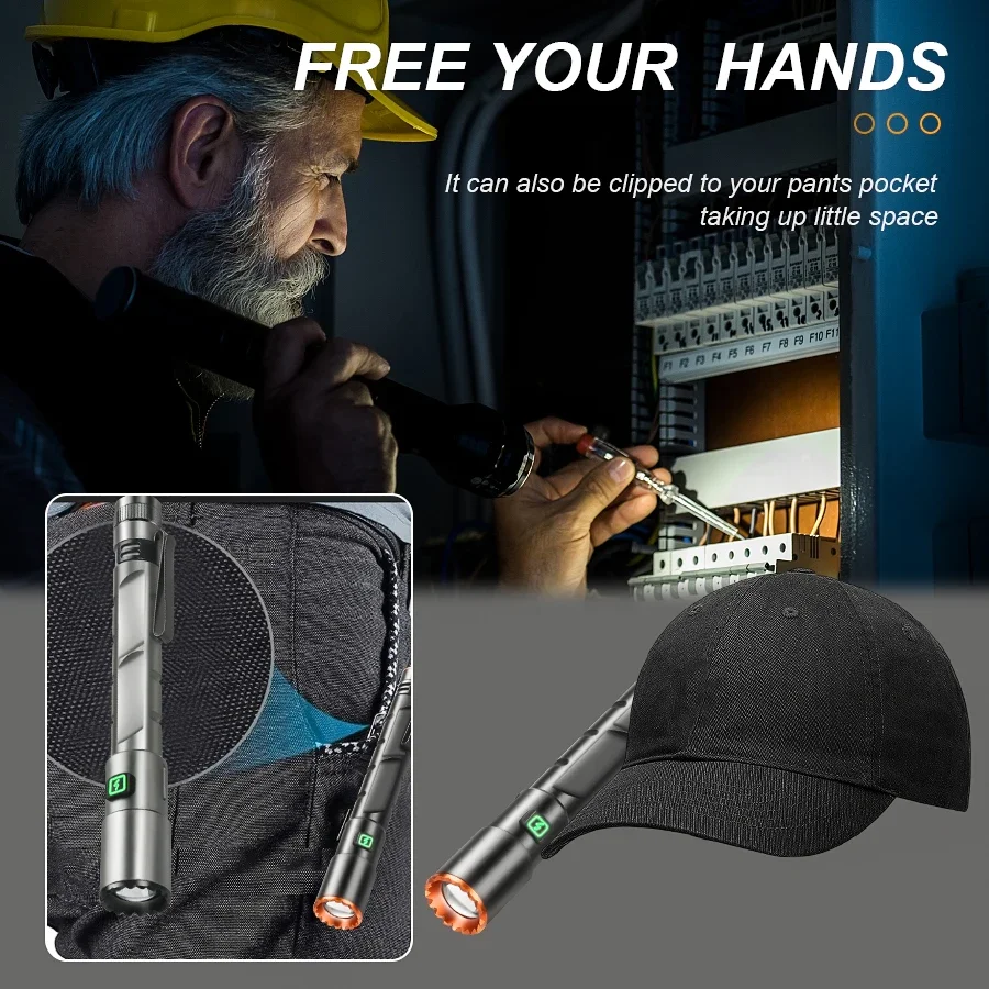 Mini kapesní nabíjecí svítilna s magnetem vám pomůže při kempování, na výletě i doma při výpadku proudu. Vyřeší slabé osvětlení, složité nabíjení i nutnost držet světlo v ruce. Díky klipu, magnetu, zoomu a odolnému tělu ji máte vždy po ruce a bez zbytečných starostí.