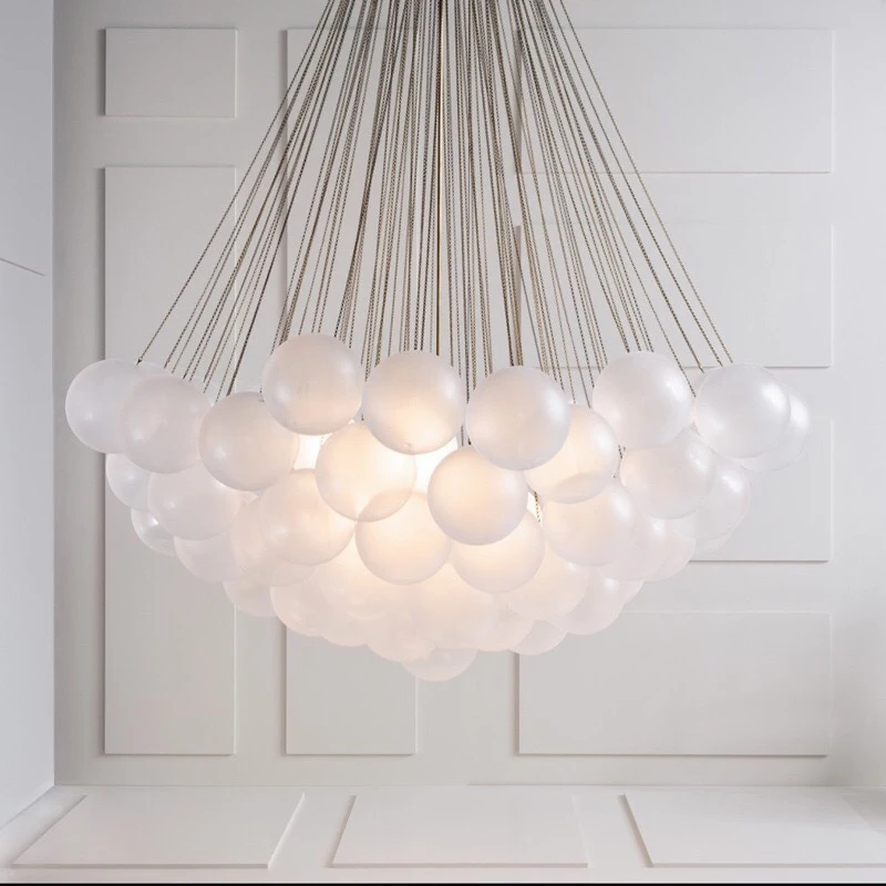 Moderní závěsná lampa ze skla pomůže vyřešit slabé osvětlení i prázdný vzhled místnosti. Díky matným skleněným koulím působí jemně, ale výrazně. Nemusíte řešit fádní interiér, ostré světlo ani složitou montáž. Je to stylový kousek, který dodá domovu i podniku elegantní atmosféru.