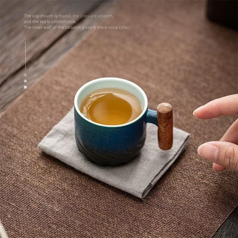 Vychutnejte si svůj oblíbený nápoj v modrém keramickém hrnku s nádherným ručně malovaným designem a originálním dřevěným uchem, které skvěle padne do ruky. Zapomeňte na obyčejné hrnky, které se špatně drží a rychle chladnou. Díky kvalitní keramice si udržíte teplotu nápoje déle a užijete si každé doušky kávy nebo čaje s maximálním požitkem. Ideální do kanceláře, domova nebo jako stylový dárek.