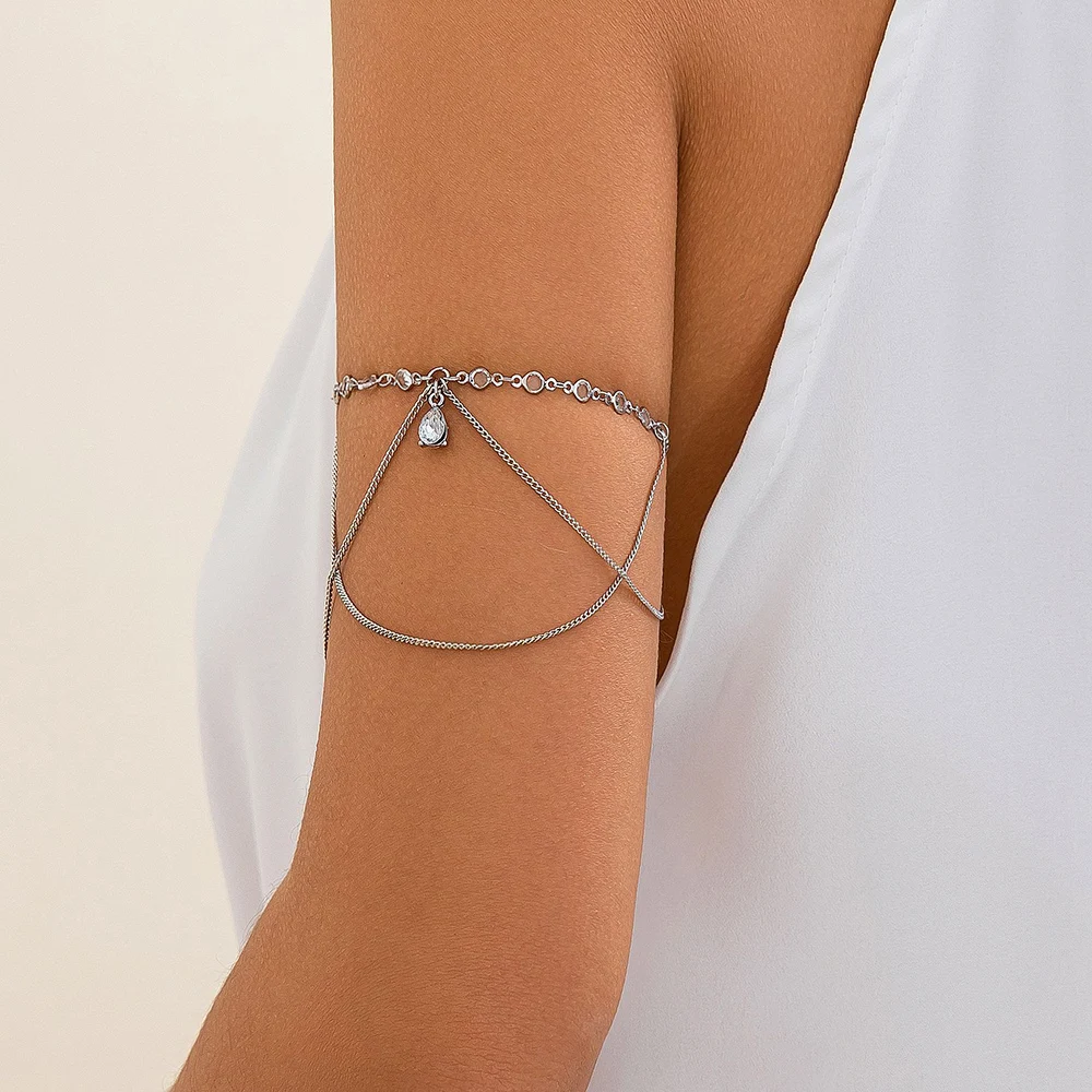 Tento náramek na paži ti pomůže doladit outfit bez složitého kombinování a bez obav, že nebude sedět. Díky nastavitelnému provedení se řetízkový náramek snadno přizpůsobí a ty už nemusíš řešit nepohodlí ani klouzání. Dámský náramek s krystaly působí elegantně na pláži i ve městě a dodá vzhledu výrazný, ale stále jemný detail.