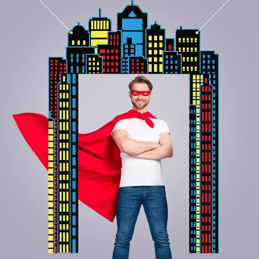 S tímto narozeninovým superhrdinským závěsem na dveře vytvoříte výraznou výzdobu během chvíle a hosté hned poznají, kde je párty. Jako venkovní banner zakryje běžné dveře i zeď, takže nemusíte řešit nudný vchod ani složité dekorování.