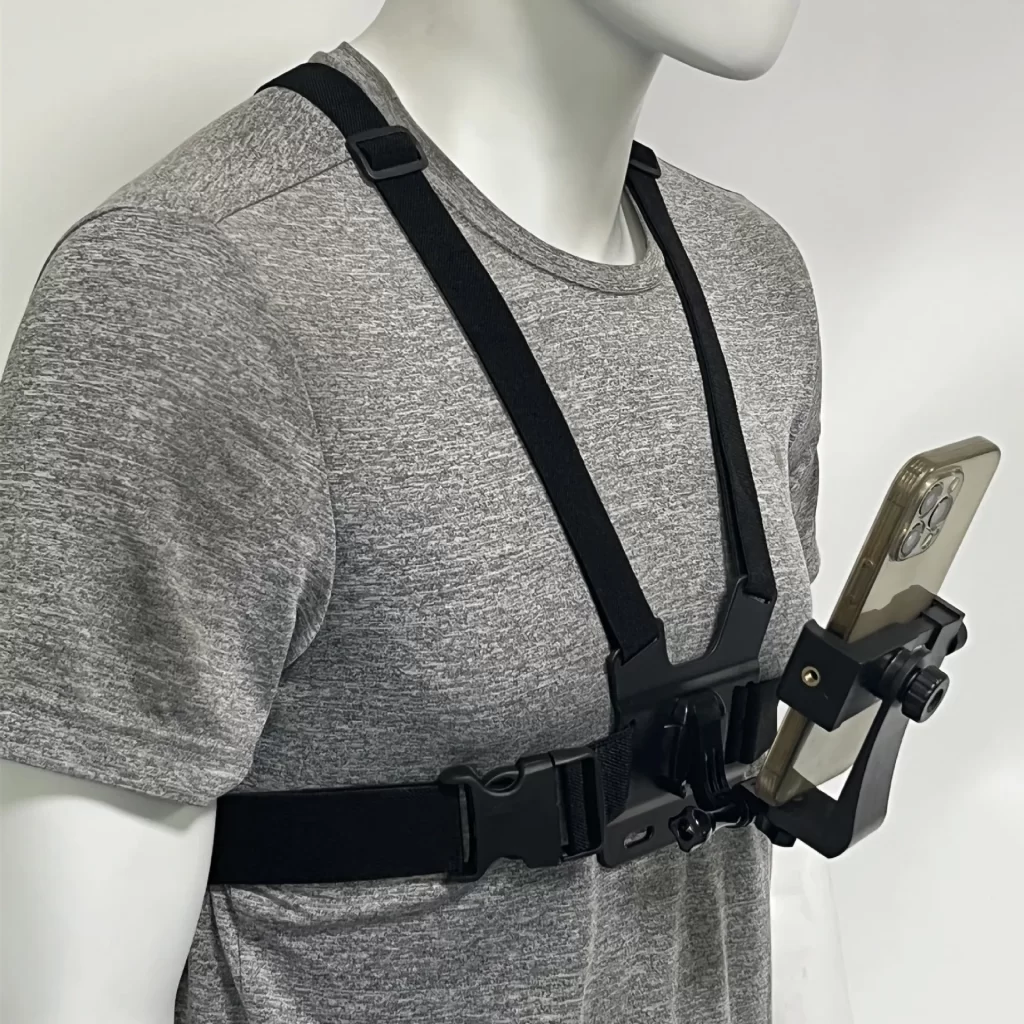 Nastavitelný držák telefonu s hrudním popruhem vám uvolní ruce a umožní nahrávat každý pohyb bez třesu nebo složitého držení. Už žádné nešikovné úhly ani vypadávání telefonu – držák telefonu drží pevně a bezpečně. Díky němu můžete sportovat, natáčet a soustředit se jen na zážitek. Vyřešíte nepohodlí, ušetříte čas a získáte lepší videa.