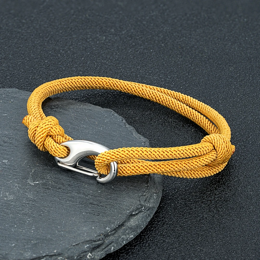Ručně vyrobený náramek z pevné námořnické šňůry a ocelové spony vám přináší kombinaci jednoduché elegance a dlouhé životnosti. Už nemusíte řešit oprýskané plastové náramky ani podráždění kůže. Tento pletený náramek je navržen tak, aby se přizpůsobil každé ruce a držel tvar. Ideální pro každodenní nošení i jako dárek, který potěší.