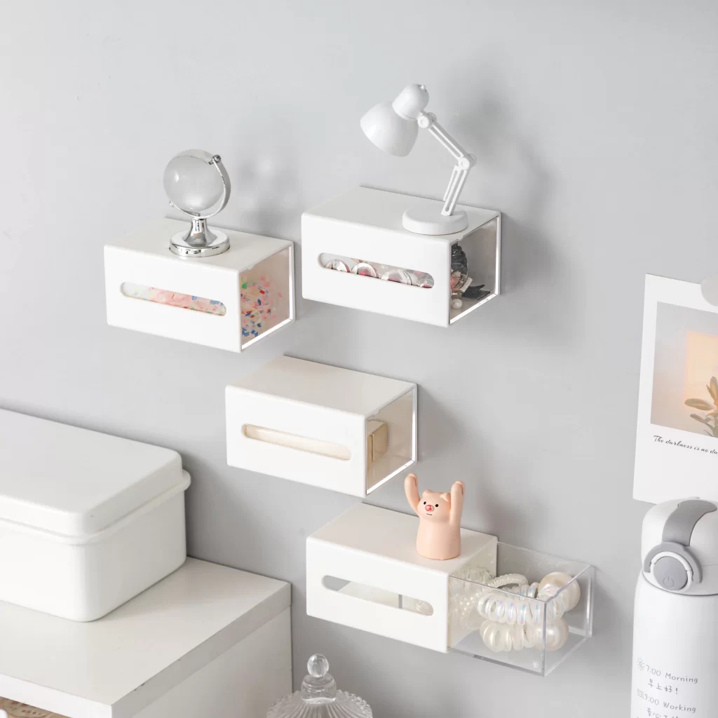 Tento úložný box je ideálním řešením pro efektivní ukládání drobných předmětů, jako jsou klipy na vlasy, kosmetika nebo kancelářské potřeby. Už žádné nepořádky po celém domě! Díky svému praktickému designu ho můžete snadno připevnit na stěnu, čímž ušetříte místo a předejdete zbytečnému hromadění věcí na stolech nebo podlahách. **Jednoduché použití** a **snadná montáž** na jakýkoliv povrch dělají tento box ideální pro každou místnost ve vaší domácnosti.