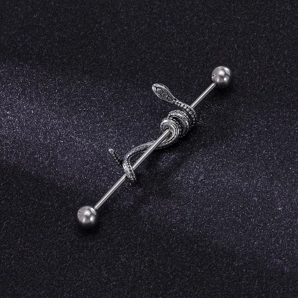 Tento stylový ocelový piercing s hadím a měsíčním motivem dodá vašemu vzhledu originální šmrnc. Díky odolné chirurgické oceli se nemusíte bát ztráty barvy nebo podráždění pokožky. Vyřešíte problém s běžnými šperky, které se rychle opotřebují a získáte doplněk, který zaujme svým designem i leskem.