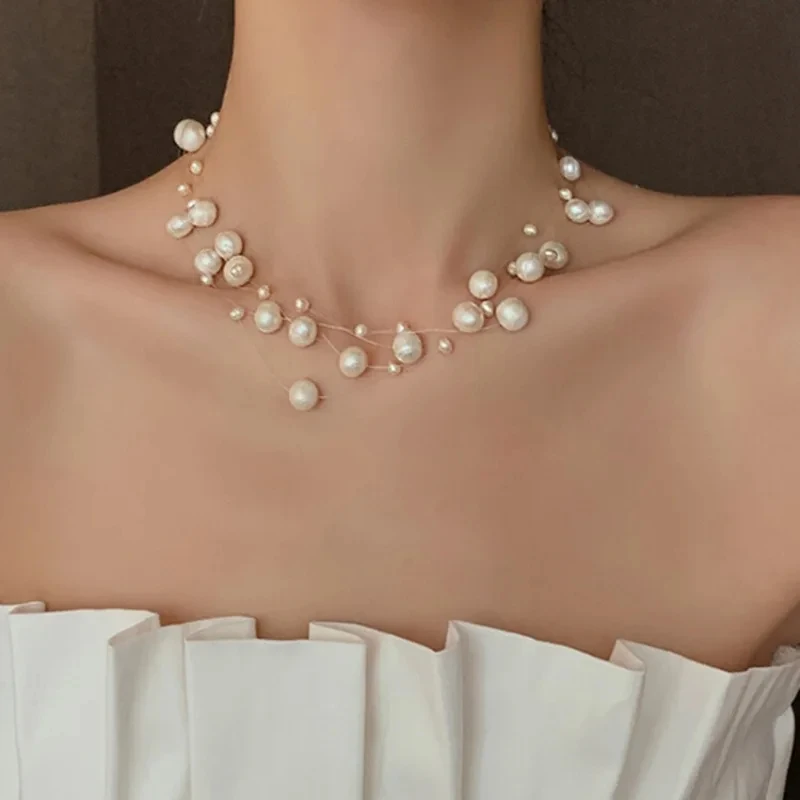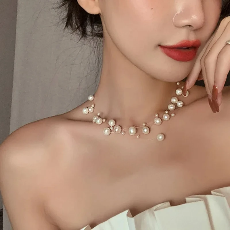 1× vícevrstvý perlový náhrdelník ve francouzském stylu