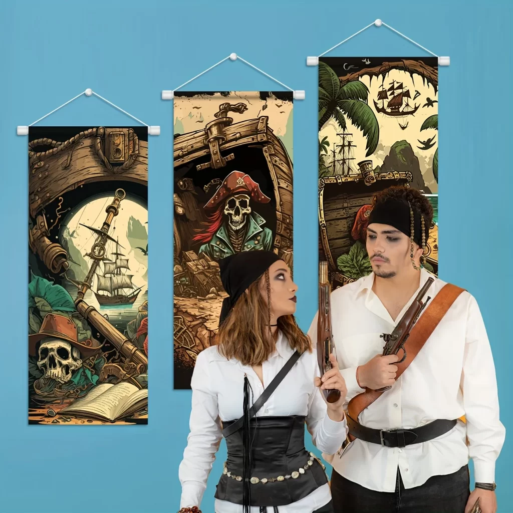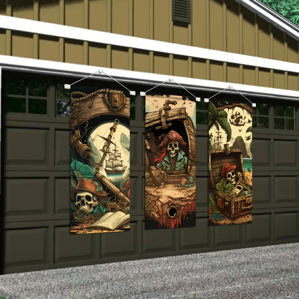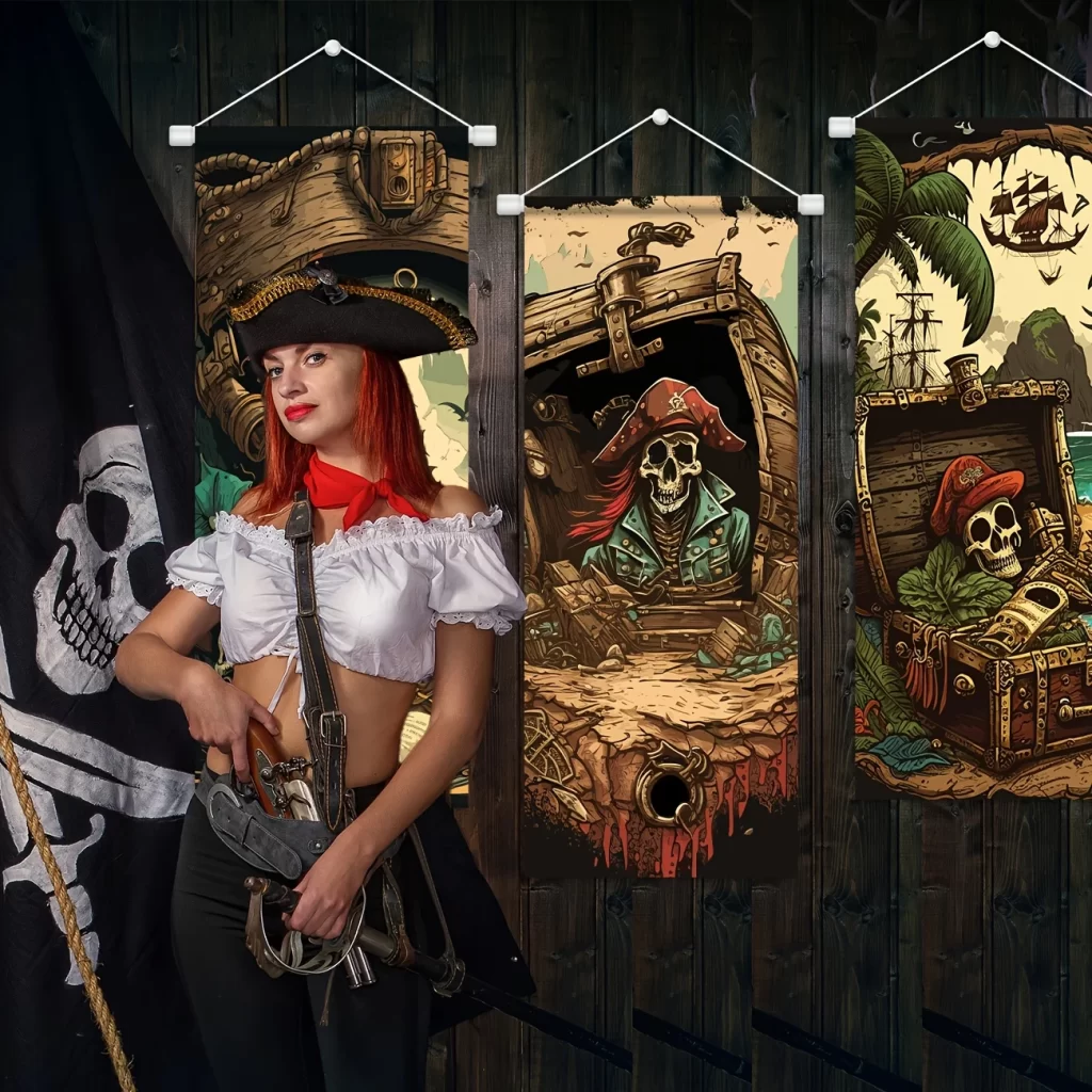 Tento halloween banner s motivem pirátské dekorace a lebky dekorace okamžitě vytvoří temnou atmosféru a jasně ukáže téma oslavy. Díky němu nemusíte řešit prázdné zdi ani nudný vstup a vše působí jednotně. Halloweenská výzdoba zaujme hosty i kolemjdoucí a dodá prostoru výrazný styl bez složité instalace.