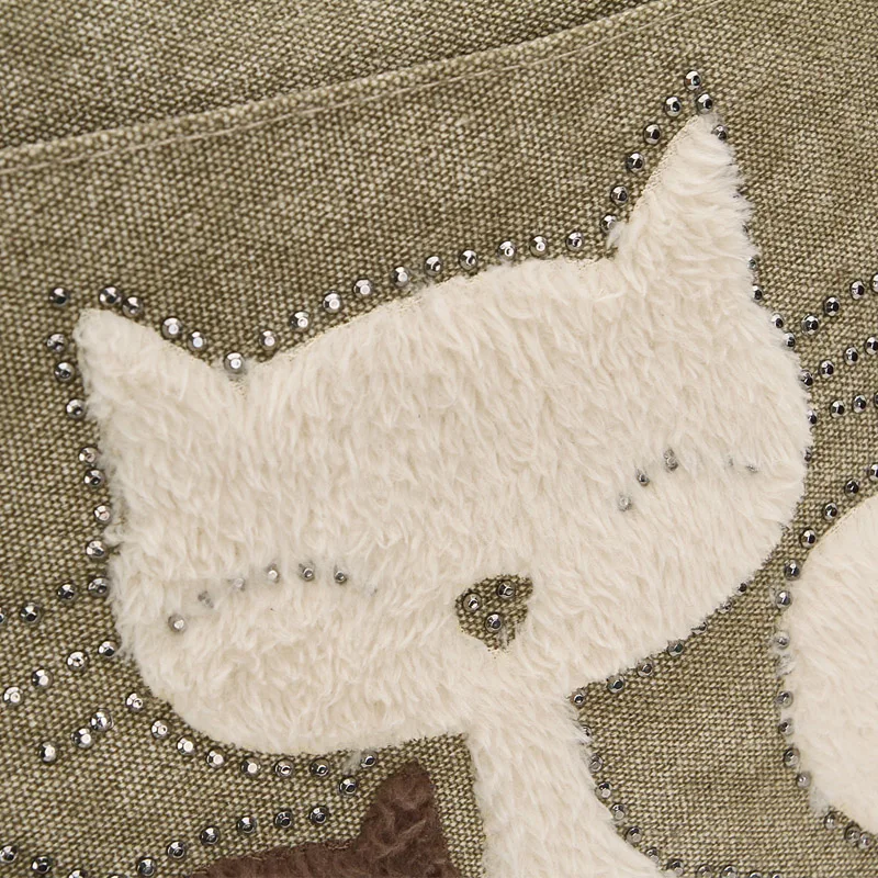 Tato jedinečná dámská kabelka vyřeší problém s nudnými doplňky, nabídne dostatek prostoru pro každodenní věci a ušetří vám čas hledáním vhodné tašky. Díky stylovému designu s kočkou a nýtky se nemusíte bát, že splynete s davem. Je to ideální volba pro školu, práci i nákupy.