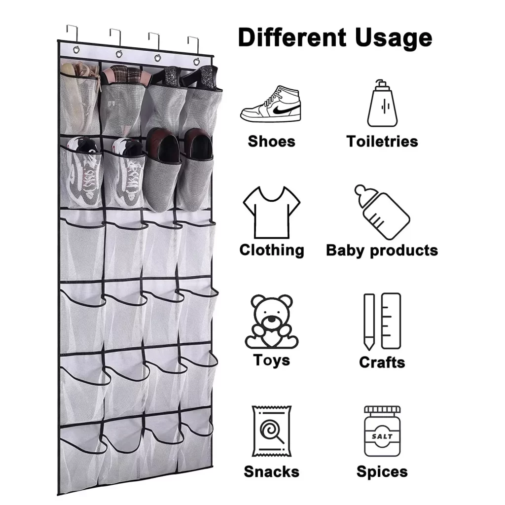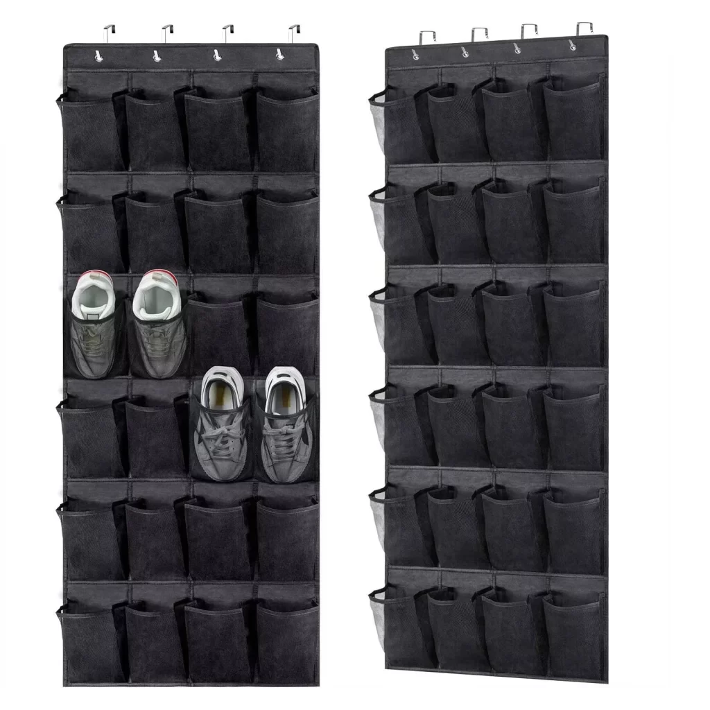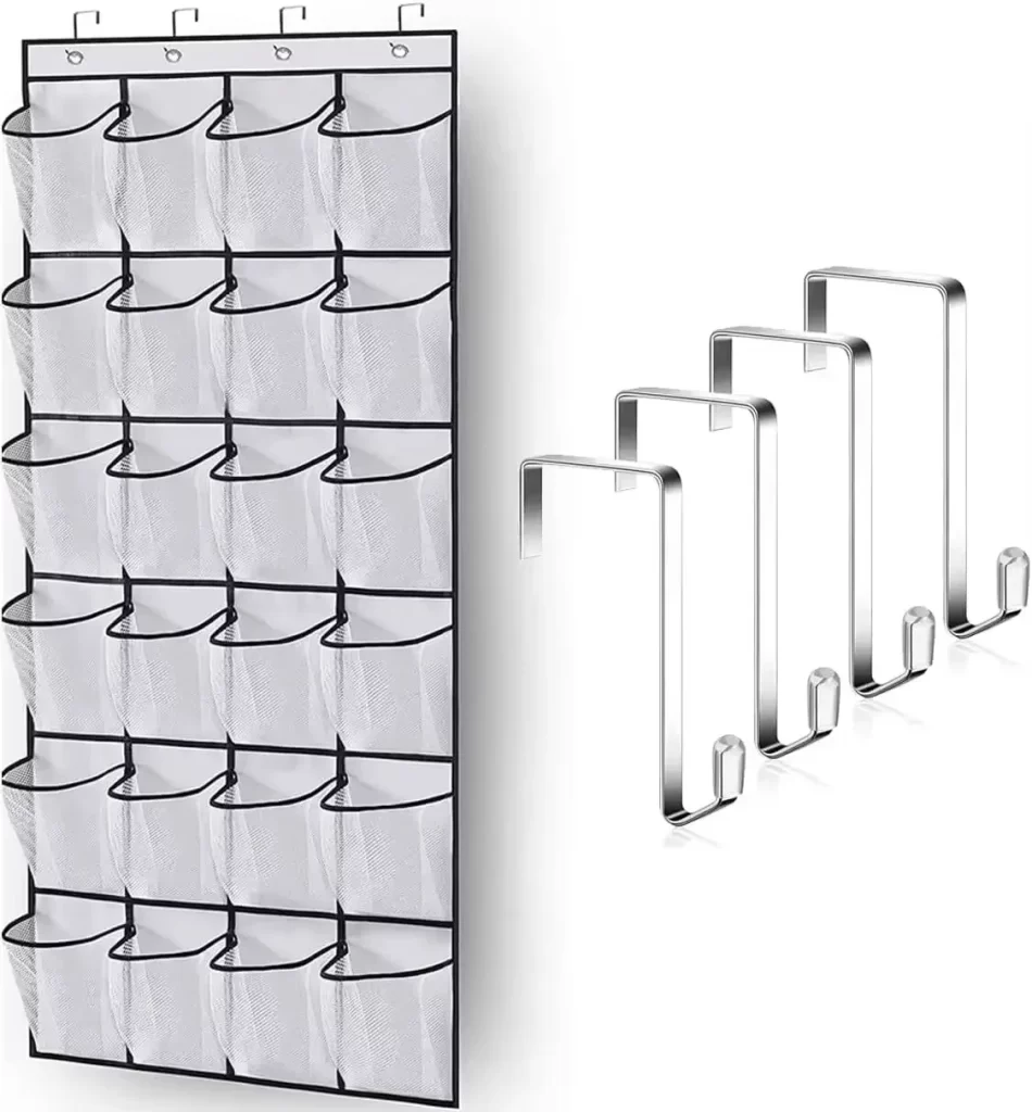 1× závěsný botník s 24 kapsami, 3× kovový hák pro zavěšení na dveře