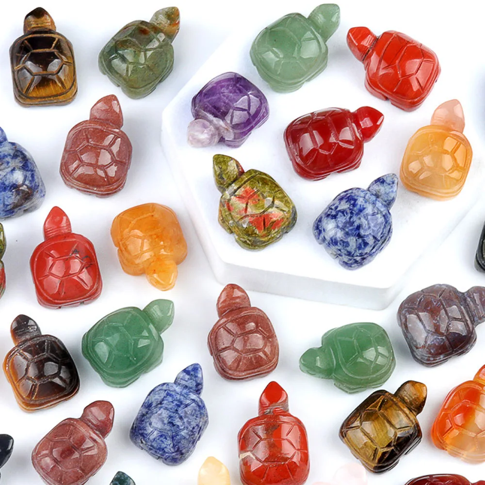 Tato ručně vyřezávaná mini soška želvy z přírodního kamene vám přinese kouzlo originality. Díky ní už nemusíte hledat vhodný dárek nebo dekoraci a získáte malý předmět, který vynikne svou jedinečností. Snadno vyřešíte nedostatek inspirace na šperk či dárek a vyhnete se tuctovým doplňkům.