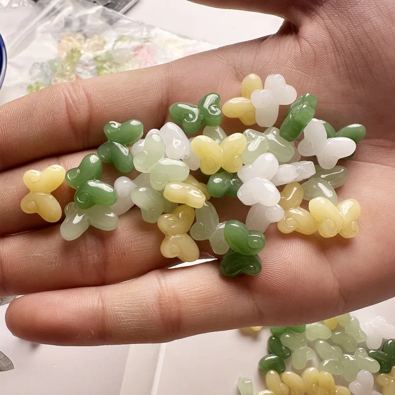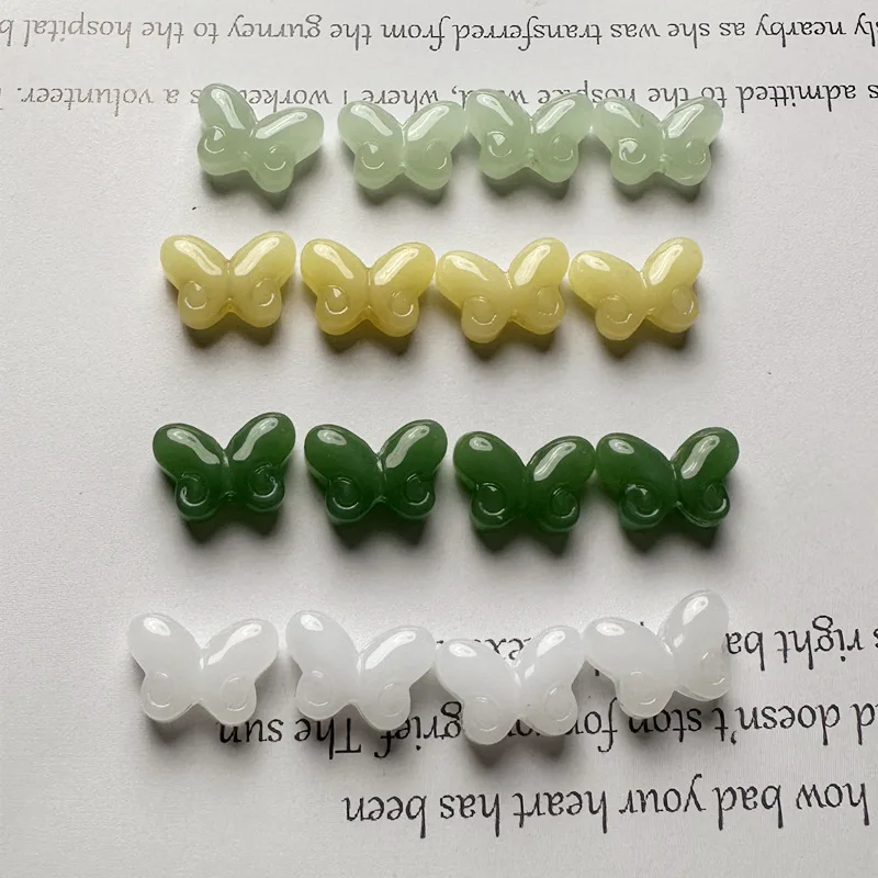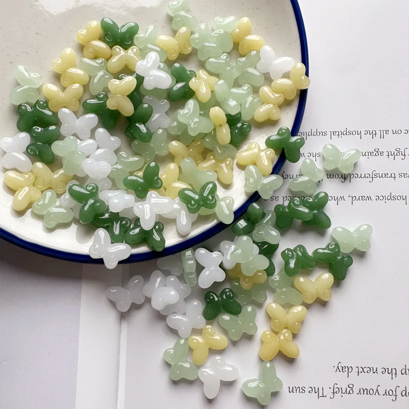 10 ks přírodních motýlích korálků z jadeitu a achátu