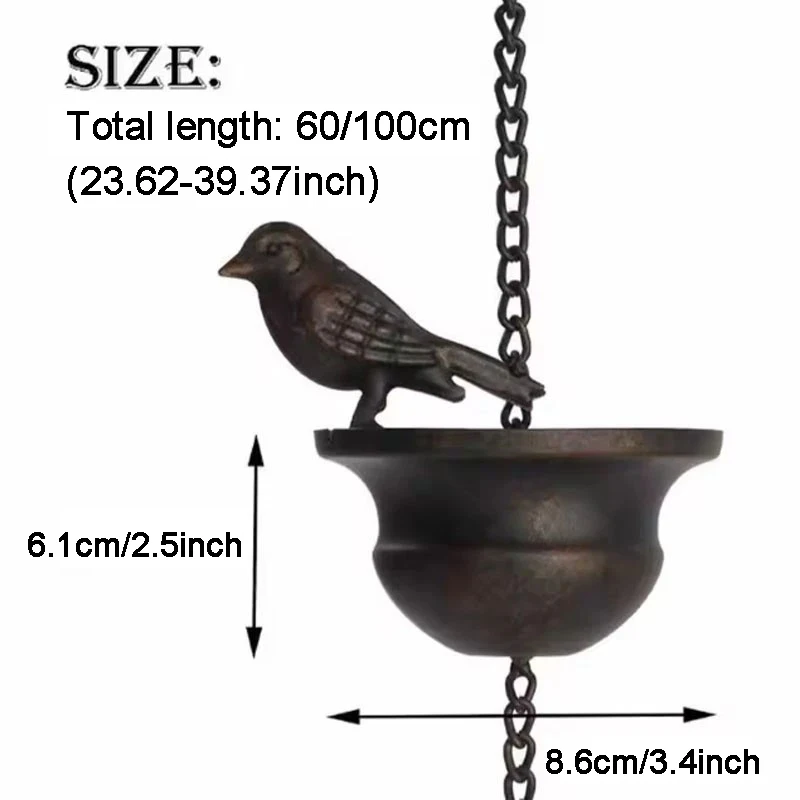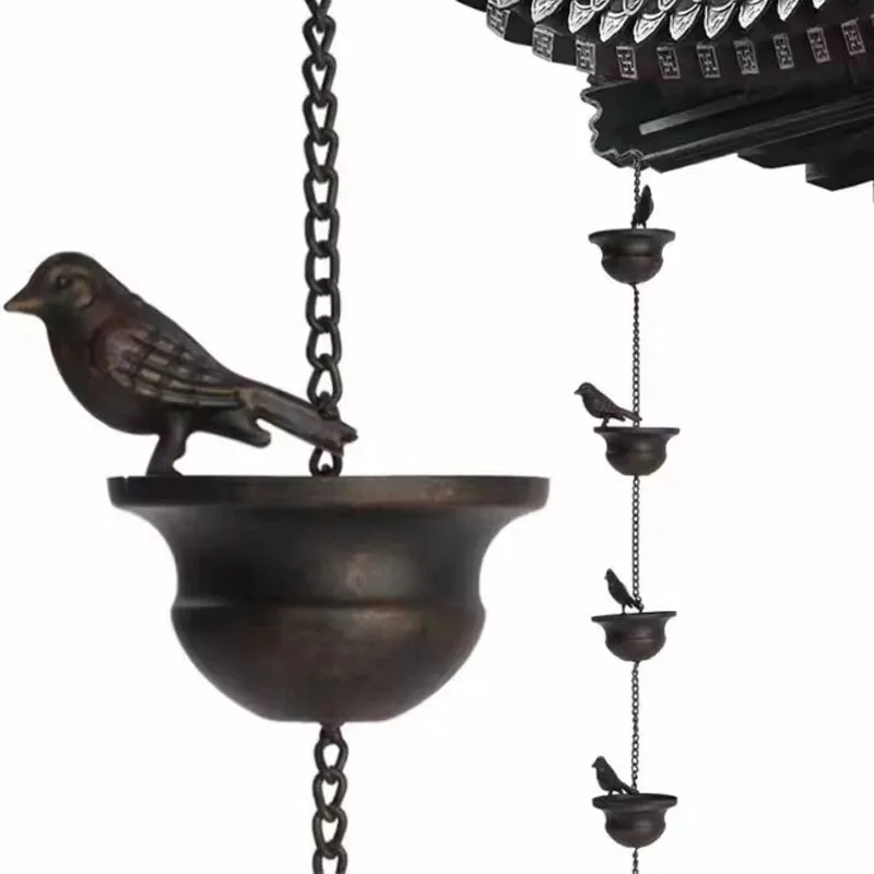 Tento retro kovový dešťový řetěz přemění obyčejný okap na krásnou venkovní dekoraci, která přinese do vaší zahrady klidný zvuk a kouzelný vzhled. Už nemusíte řešit nudný odtok vody ze střechy, místo toho získáte originální zahradní dekoraci, která zaujme každého a vydrží dlouhá léta.
