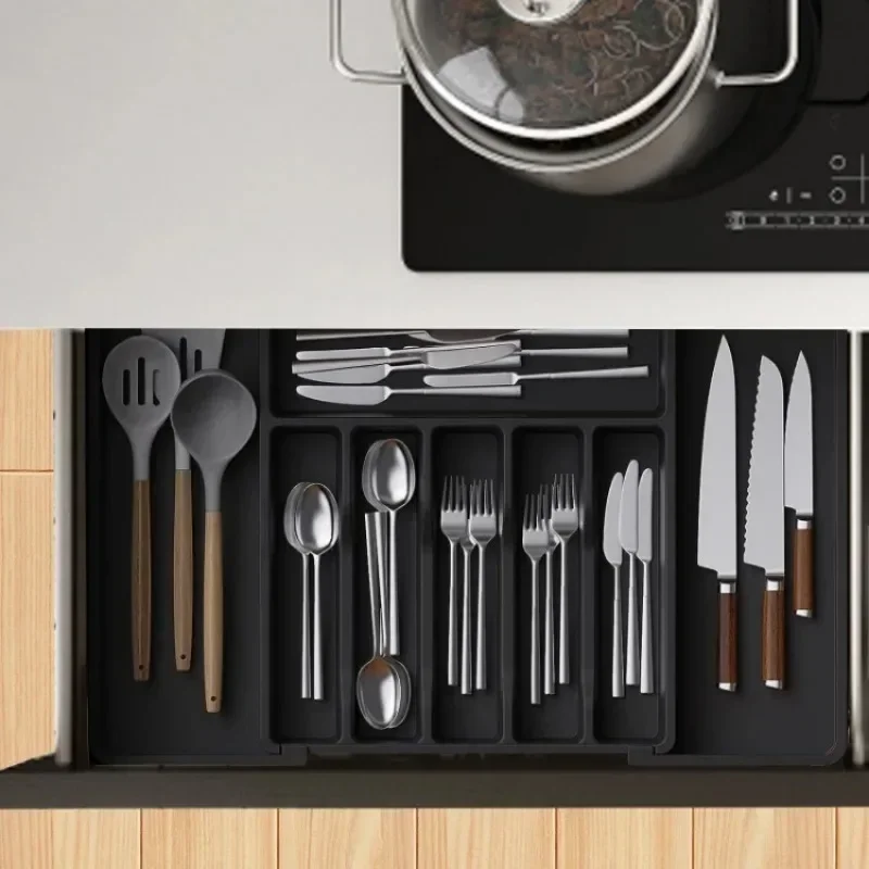 Udržujte pořádek v kuchyňské zásuvce bez námahy díky tomuto roztahovacímu organizéru příborů do zásuvky. Už žádné hledání lžiček, nožů nebo vidliček. Snadno přizpůsobitelný pro různé velikosti zásuvek, zabrání posouvání příborů a ušetří čas při každém vaření. Jednoduchý, praktický a účinný pomocník pro každou domácnost.