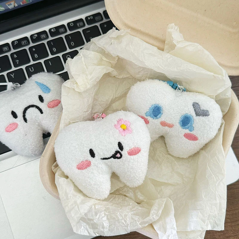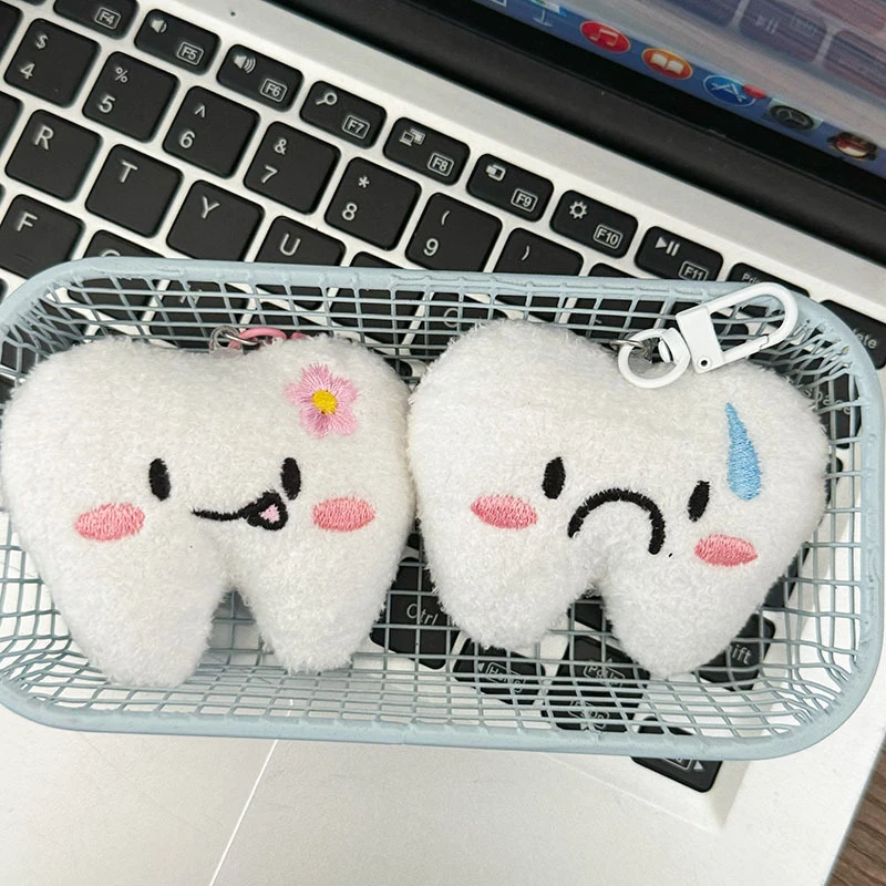 1× roztomilý plyšový přívěsek ve tvaru zubu s kovovou karabinou