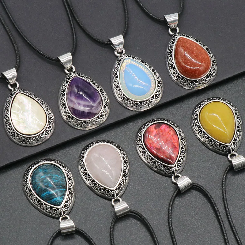 1× růženínový přívěsek ve tvaru kapky s řetízkem