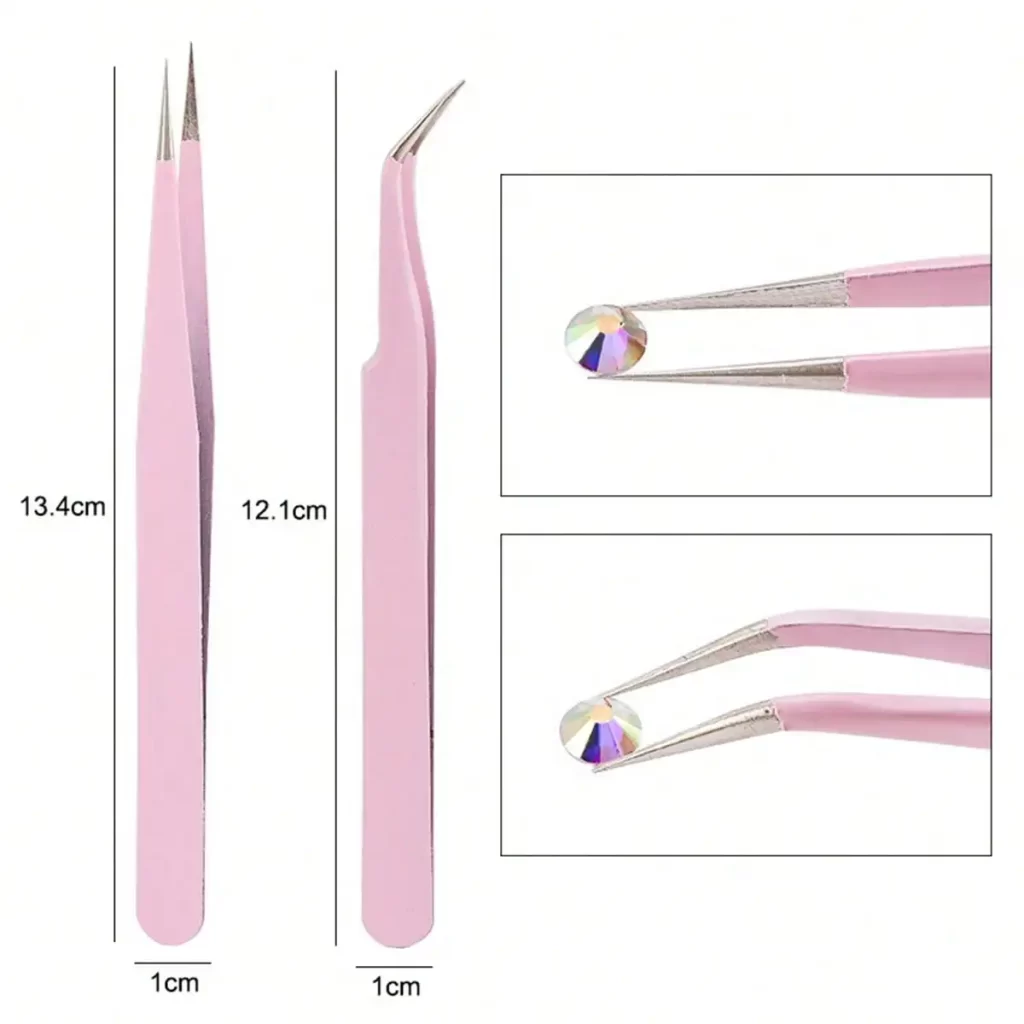 Růžová profesionální pinzeta duo ti pomůže přesně uchopit umělé řasy, ozdoby na nehty nebo drobné chloupky bez zbytečných pokusů a omylů. Nemusíš se trápit s nepřesným nástrojem ani ztrácet čas opravováním detailů. Je to ideální řešení pro každého, kdo touží po čisté a rychlé práci jako od profíka.