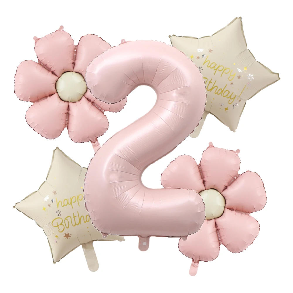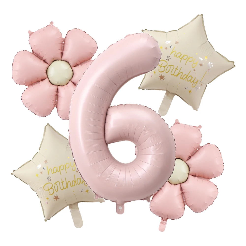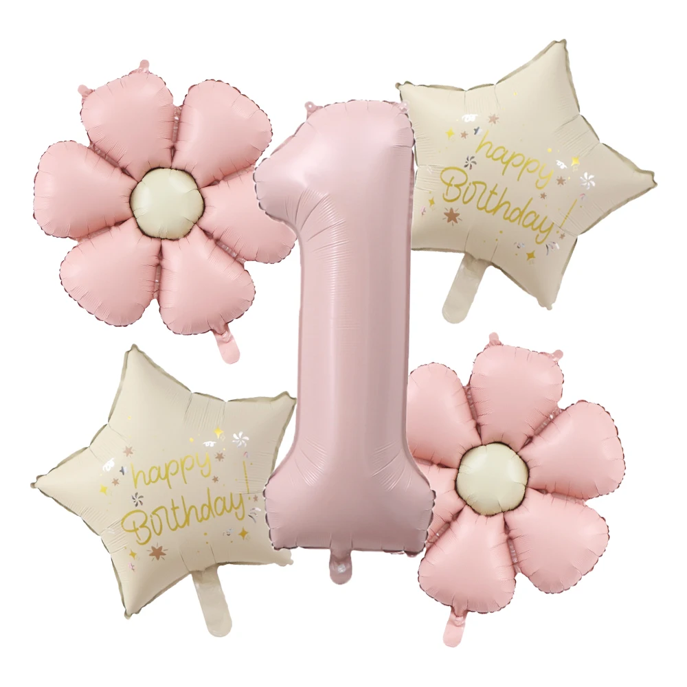 5× fóliový balónek v růžové barvě (mix tvarů květ, hvězda, číslo)