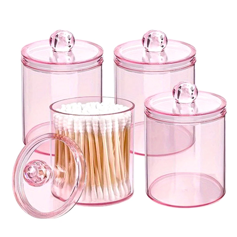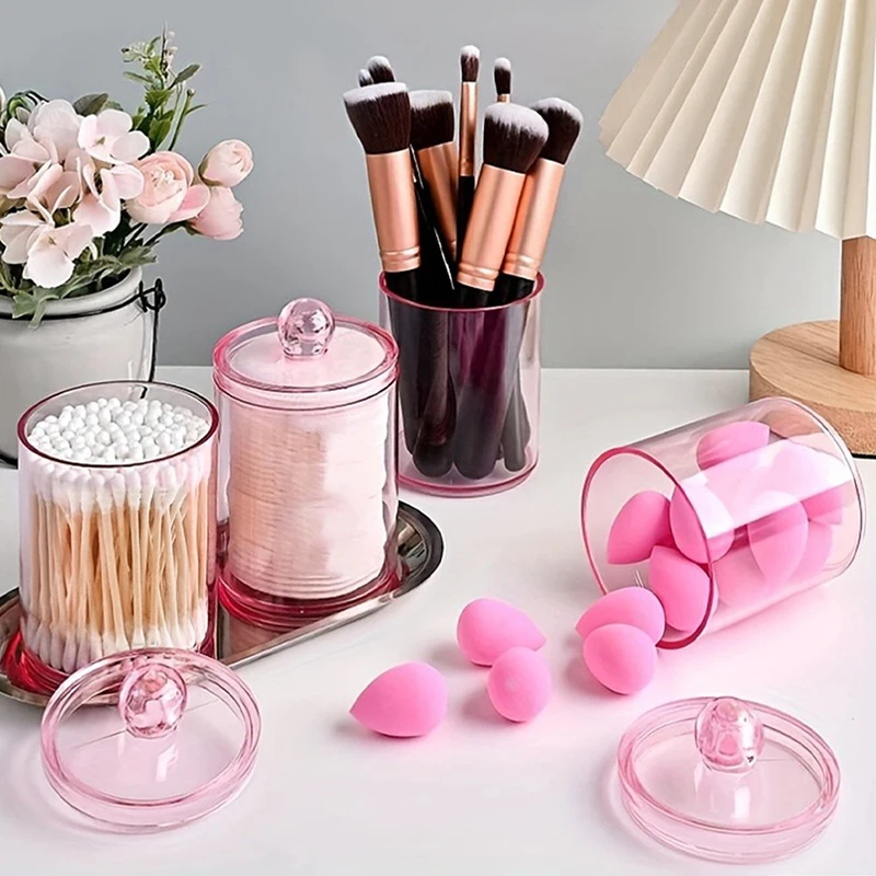 1× růžový transparentní úložný box na vatové tyčinky