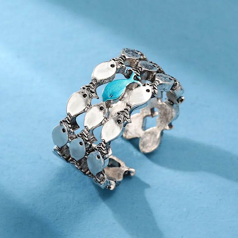 Tento prsten ve tvaru ryby oživí každý outfit a dodá mu osobitý styl. Díky otevřenému provedení se snadno přizpůsobí prstu, takže nemusíte řešit přesnou velikost. Lehký kov je příjemný na nošení a hodí se na běžný den i party. Získáte výrazný doplněk bez složité kombinace.