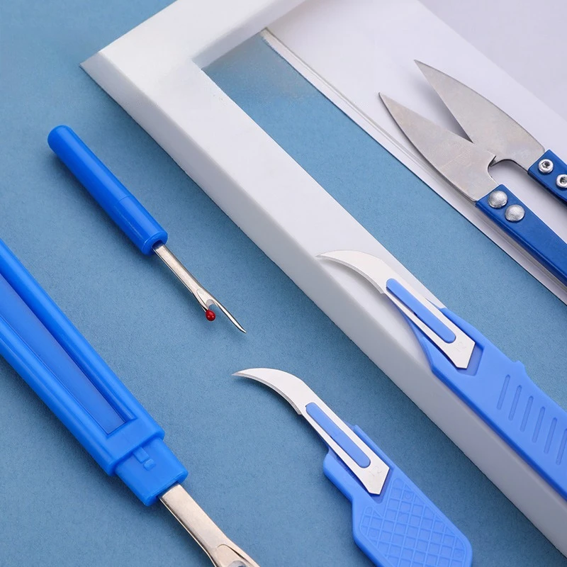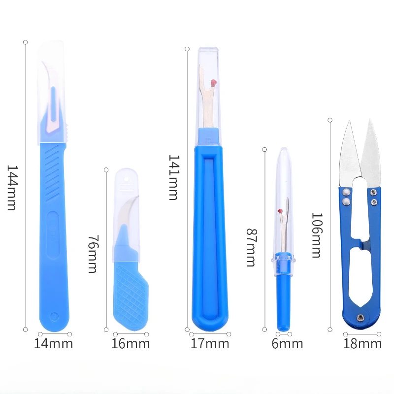 Sada modrých páráčků pomáhá snadno odstranit chybné stehy, takže nemusíte zdlouhavě trhat nitě rukama. Díky ní už neřešíte poškození látky ani nepraktické nástroje, které nefungují. Rychlé vybrání stehů šetří čas i nervy a pomáhá udržet práci čistou a přehlednou.