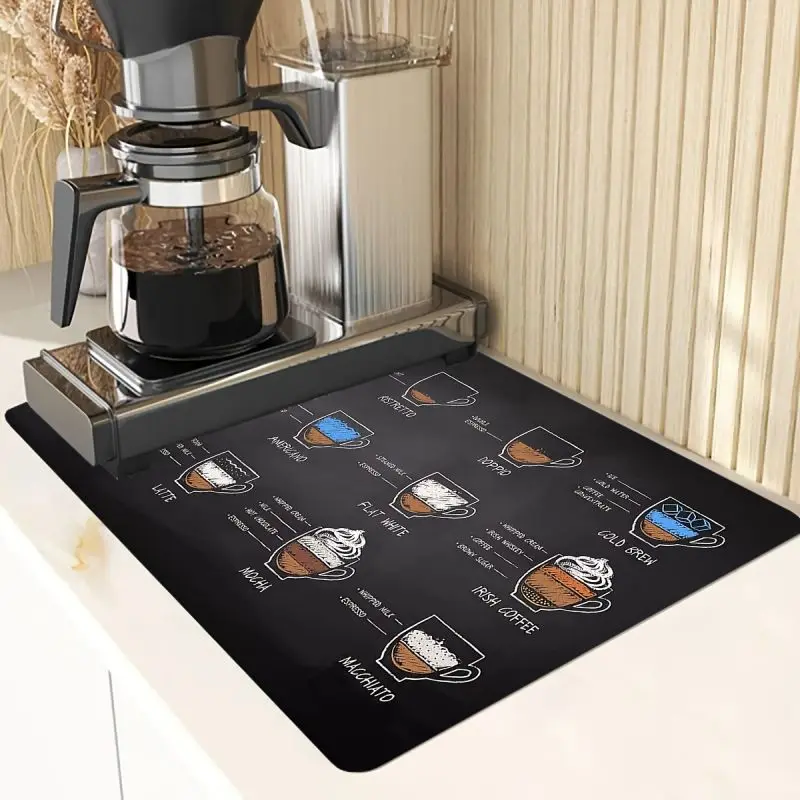 Tato savá mramorová protiskluzová podložka vám pomůže udržet čistý a suchý povrch bez neustálého stírání vody. Díky rychlé absorpci už nemusíte řešit nepříjemné skvrny a kapky vody, které zanechává nádobí. Jednoduše usnadní každodenní úklid a dodá vaší kuchyni elegantní vzhled.