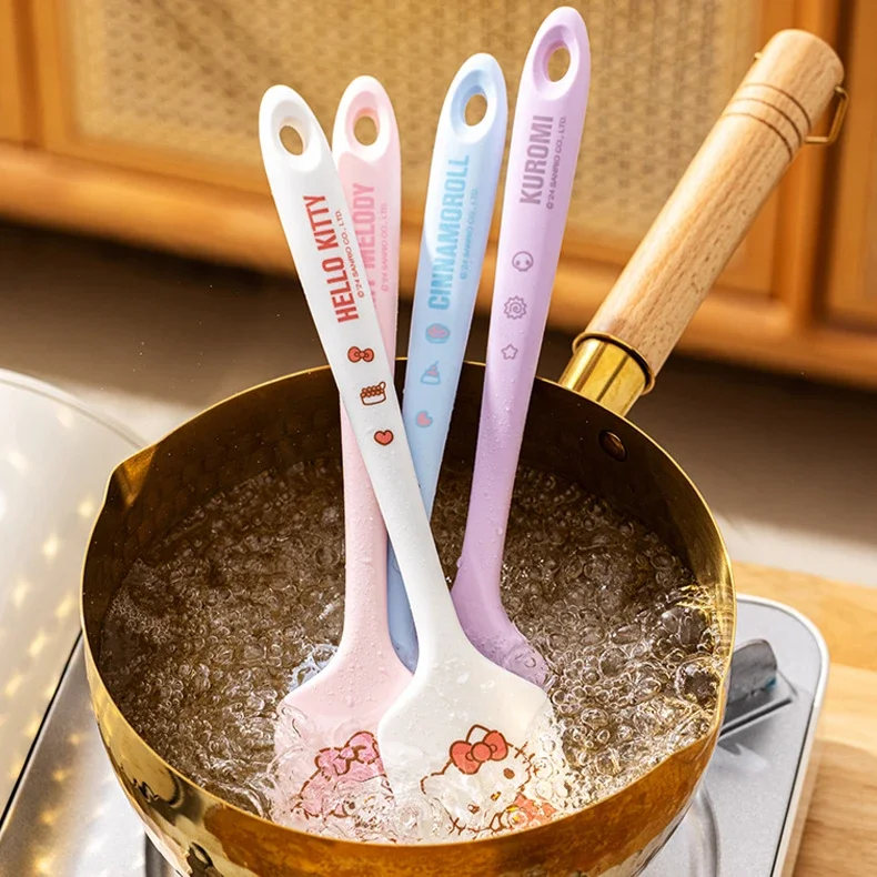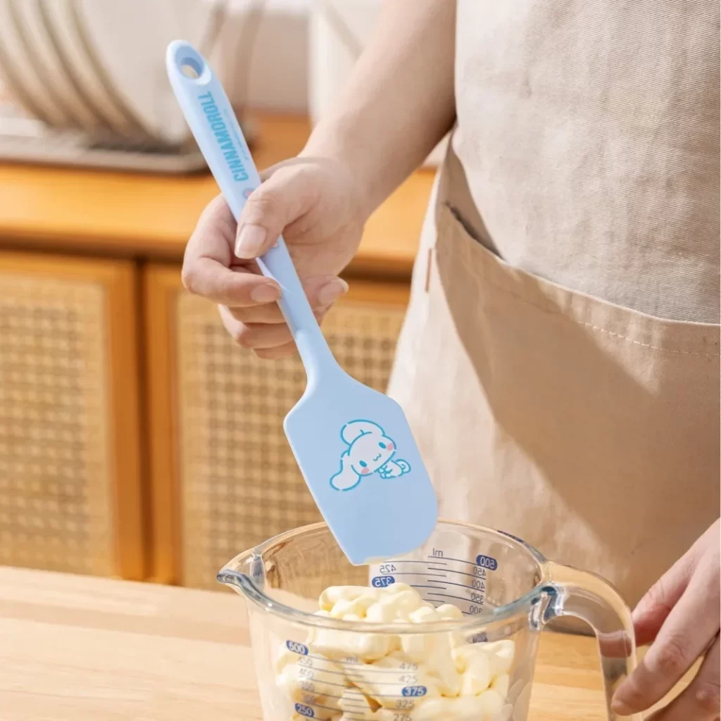 Praktická silikonová stěrka vám pomůže rychle a pohodlně míchat těsto, krémy i polevy. Díky ní už nebudete řešit obtížné zbytky těsta v míse ani nepohodlné míchání lžící. Kuchyňská stěrka s motivem Hello Kitty a Kuromi je skvělá pro každodenní pečení a navíc snadno zapadne do vaší kuchyně. S touto stěrkou na pečení zvládnete vše čistě a bez starostí.