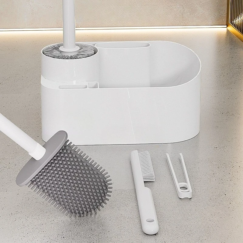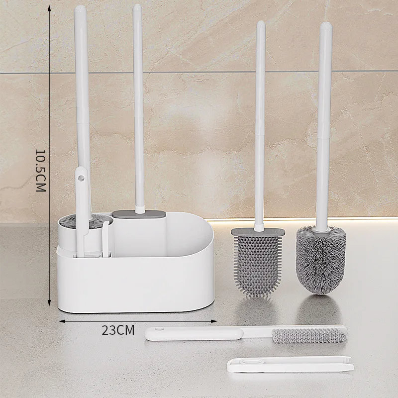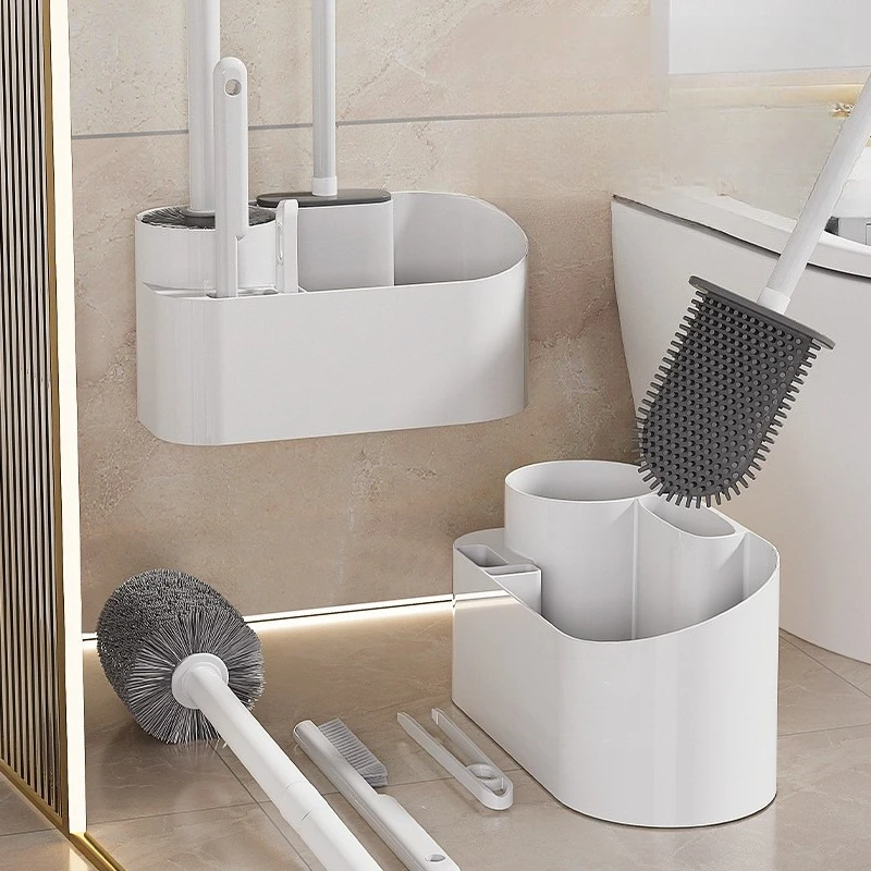 Tato silikonová wc kartáčová toaletní souprava 4v1 pomáhá zvládnout běžný úklid rychle, čistě a bez zbytečné námahy. Nečistoty se méně zachytávají, voda lépe odtéká a držák šetří místo. Díky tomu nemusíte řešit mokrou podlahu, nepříjemný vzhled ani složité uložení kartáče.
