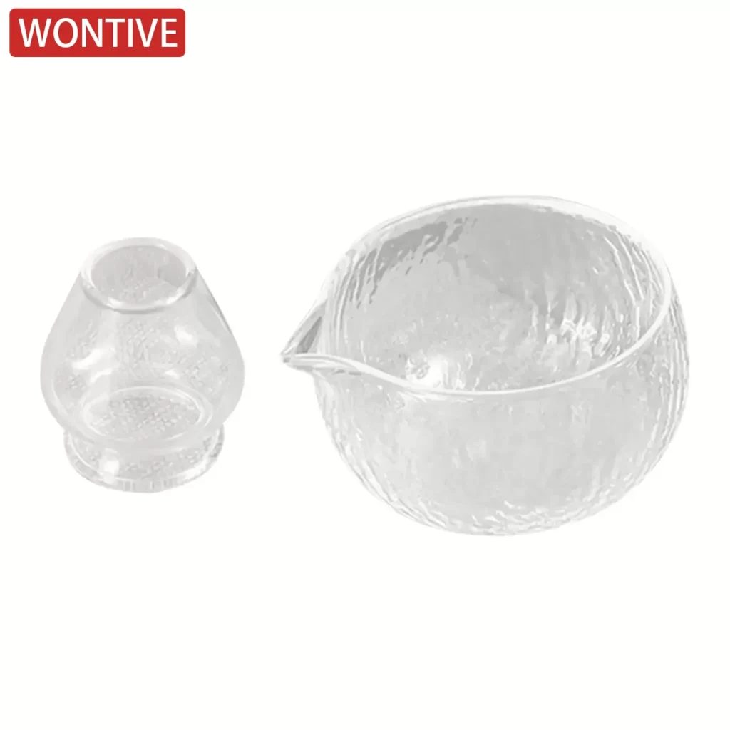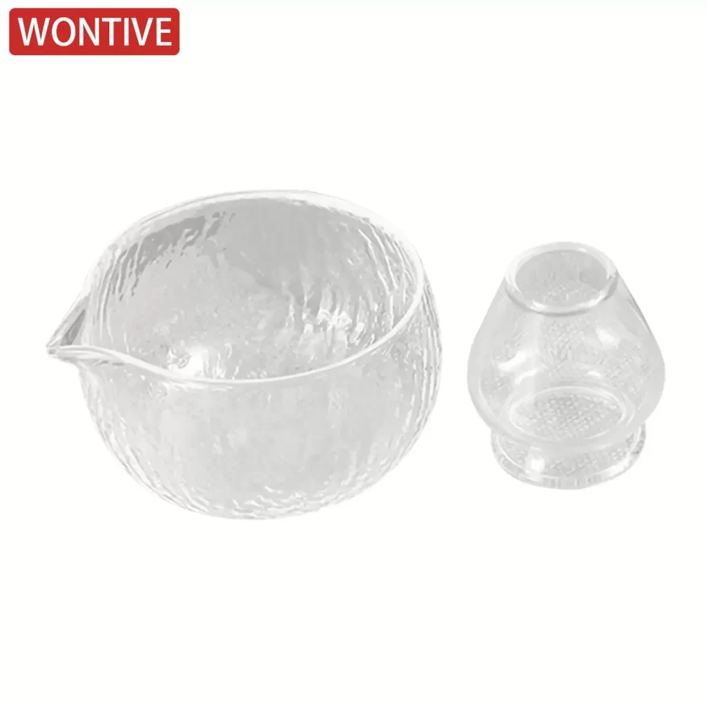 Se skleněnou matcha miskou s výlevkou a stojánkem získáte stylový doplněk pro čajové rituály. Pomáhá zabránit nepořádku při nalévání a zároveň udržuje metličku vždy v perfektním stavu. Už žádné rozbité náčiní ani zbytečné odkapávání – s touto miskou bude příprava čaje snadná a elegantní.
