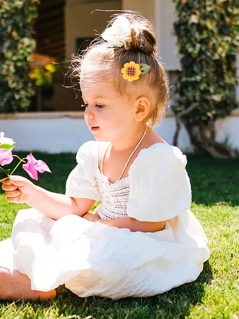 Tyto dětské sponky řeší neposedné vlásky a dodají účesu veselý vzhled bez tahání. Díky lehkému provedení se sponky do vlasů pohodlně nosí celý den a děti nemusí řešit sklouzávání. Slunečnice jako ozdoba do vlasů potěší na běžné nošení i oslavy. Praktické květiny do vlasů přinášejí styl i radost v jednom.