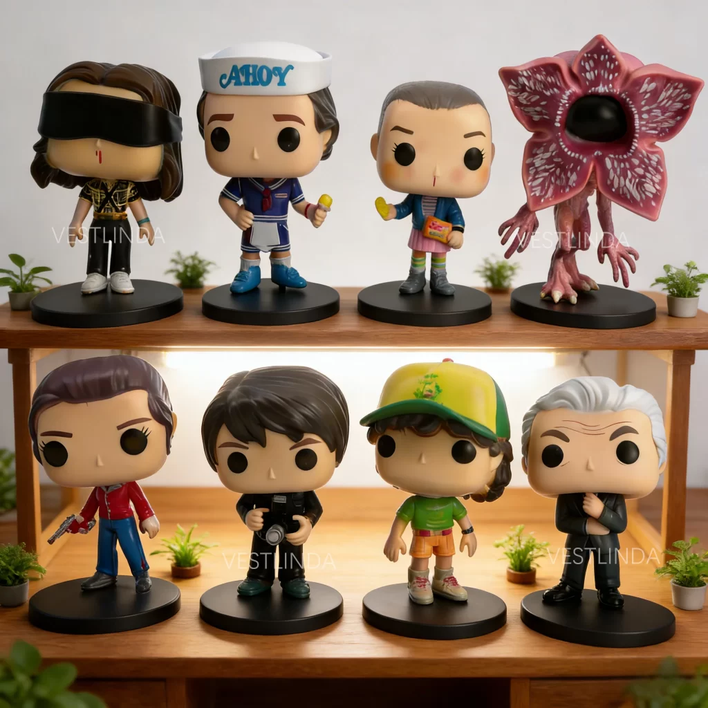 Tato sada 8 mini figurek ze světa stranger things vám rychle ozdobí poličku a udělá radost fanouškovi. Díky pevné základně se vinylové figurky snadno vystaví, nepadají a vy nemusíte řešit složité aranžování ani dárek na poslední chvíli.