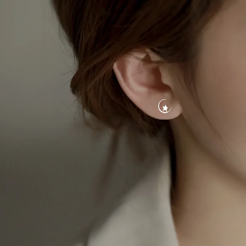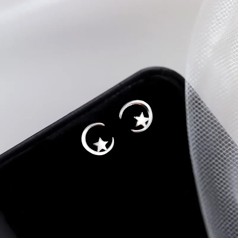 1 pár stříbrných náušnic ve tvaru hvězdy a měsíce
