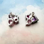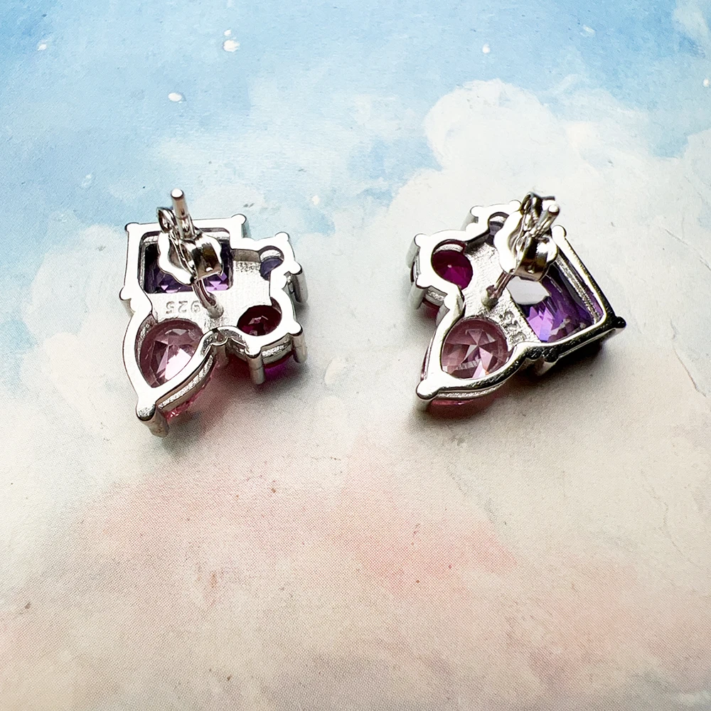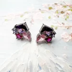 1 pár stříbrných náušnic pecky s růžovými a fialovými zirkony