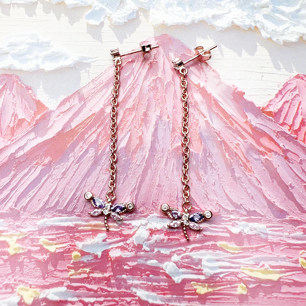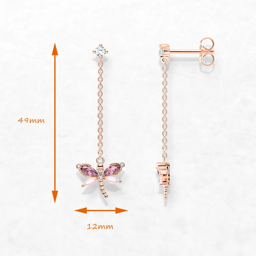 Tyto stříbrné náušnice ve tvaru vážky s kamínky v odstínu růžového zlata přinášejí elegantní detail, který zvýrazní každý outfit. Díky nim nemusíte řešit hledání univerzálních doplňků ani obavy, že šperk nebude ladit. Jsou lehké, pohodlné a přitom dodají šarm i každodennímu vzhledu.