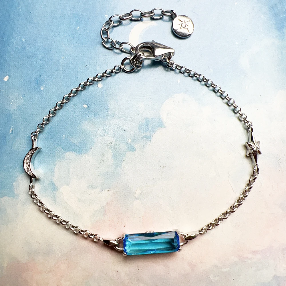 1× dámský řetízkový náramek ze stříbra 925 s modrým kamenem
