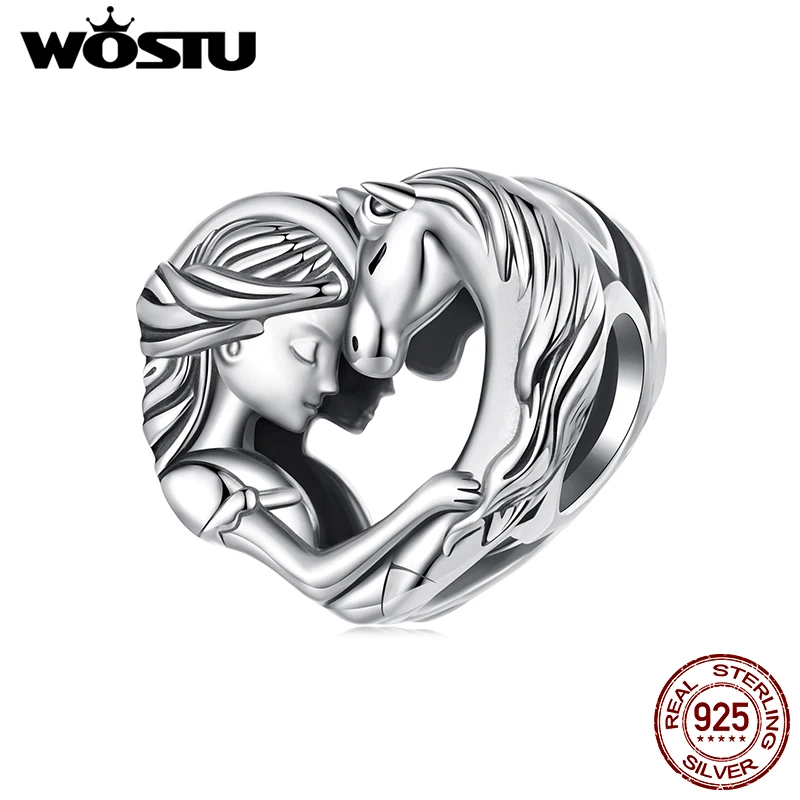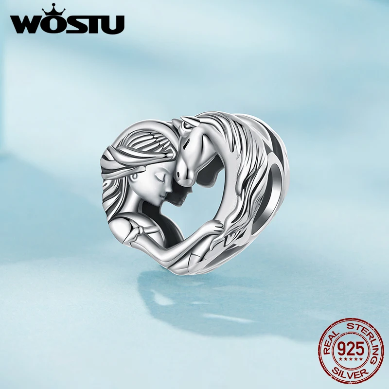 1× stříbrný přívěsek dívka a kůň ve tvaru srdce