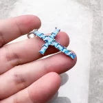 Tento stříbrný přívěsek ve tvaru kříže s jemným akvamarínovým kamenem přináší nadčasový styl, který podtrhne vaši osobnost. Díky němu už nemusíte hledat šperk na každou příležitost zvlášť, protože se hodí na běžné nošení i slavnostní chvíle. **Snadno doladí váš outfit, zvýrazní ženskost a dodá harmonizující nádech**, který oceníte každý den.