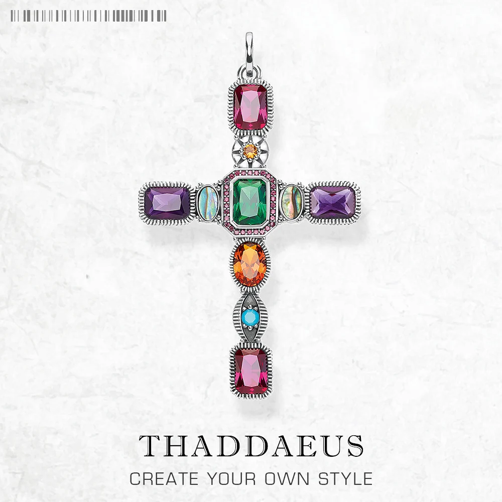 1× stříbrný přívěsek kříž vintage barevný (řetízek není součástí balení)