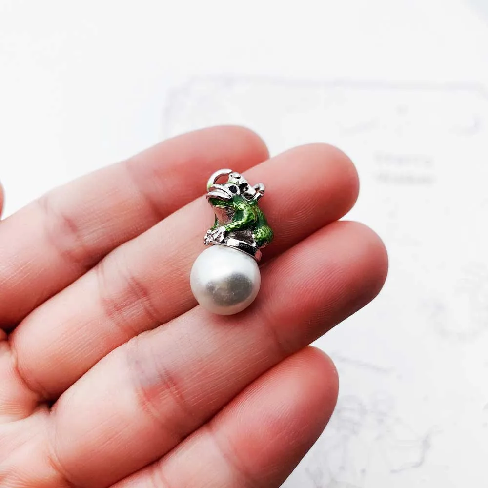 1× stříbrný přívěsek žába s perlou