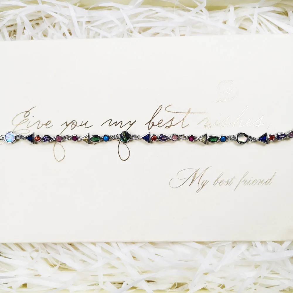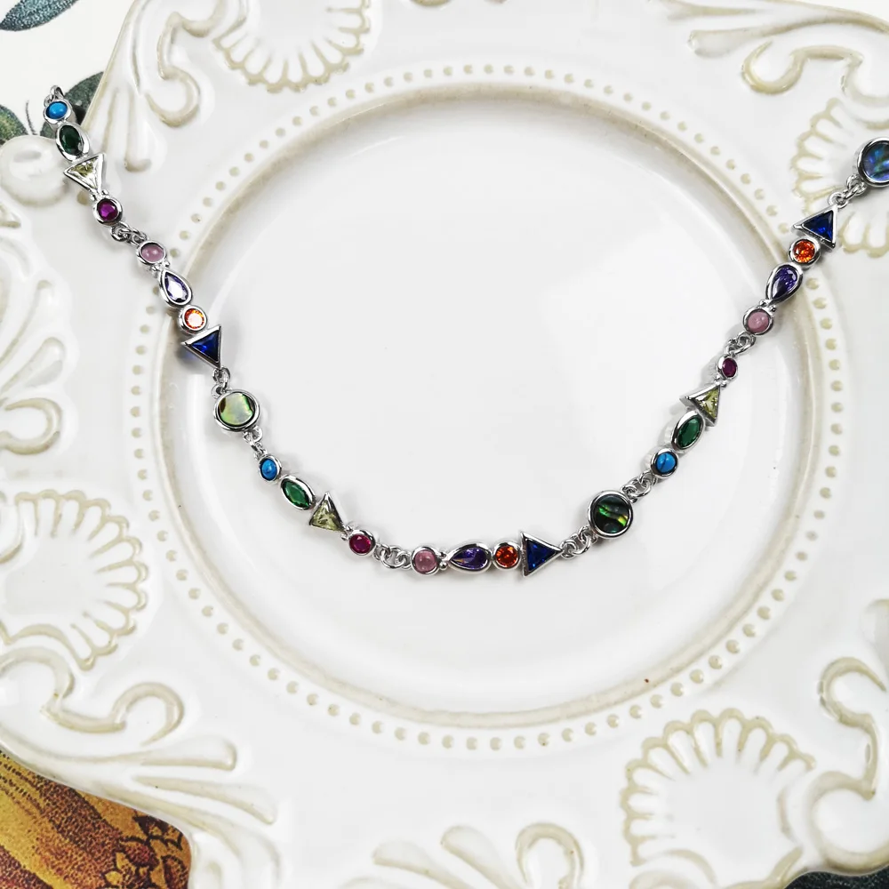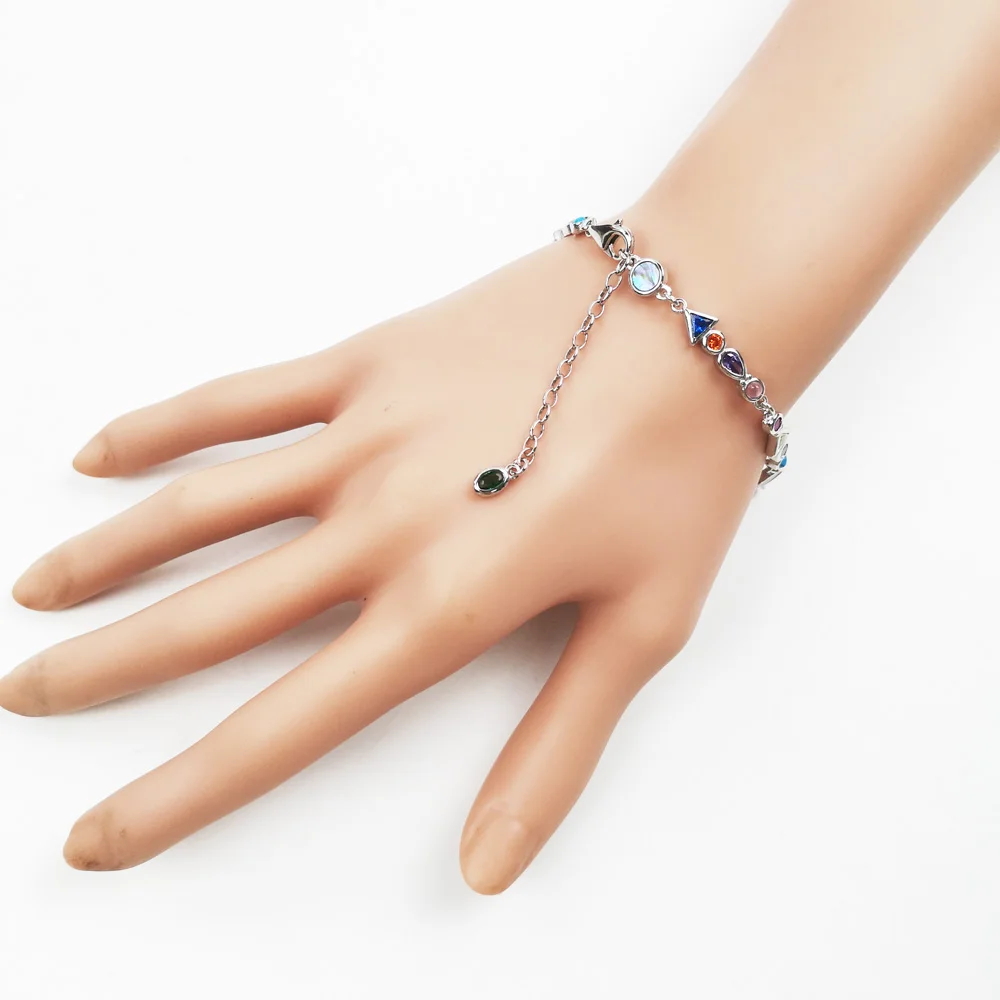 Tento stříbrný řetízkový náramek s barevnými kameny je dokonalou volbou, pokud hledáte šperk, který podtrhne vaši osobnost. Díky němu už nemusíte řešit nudné a nevýrazné doplňky. Náramek ze stříbra 925 přináší eleganci, styl a pohodlí pro každý den i výjimečné chvíle.
