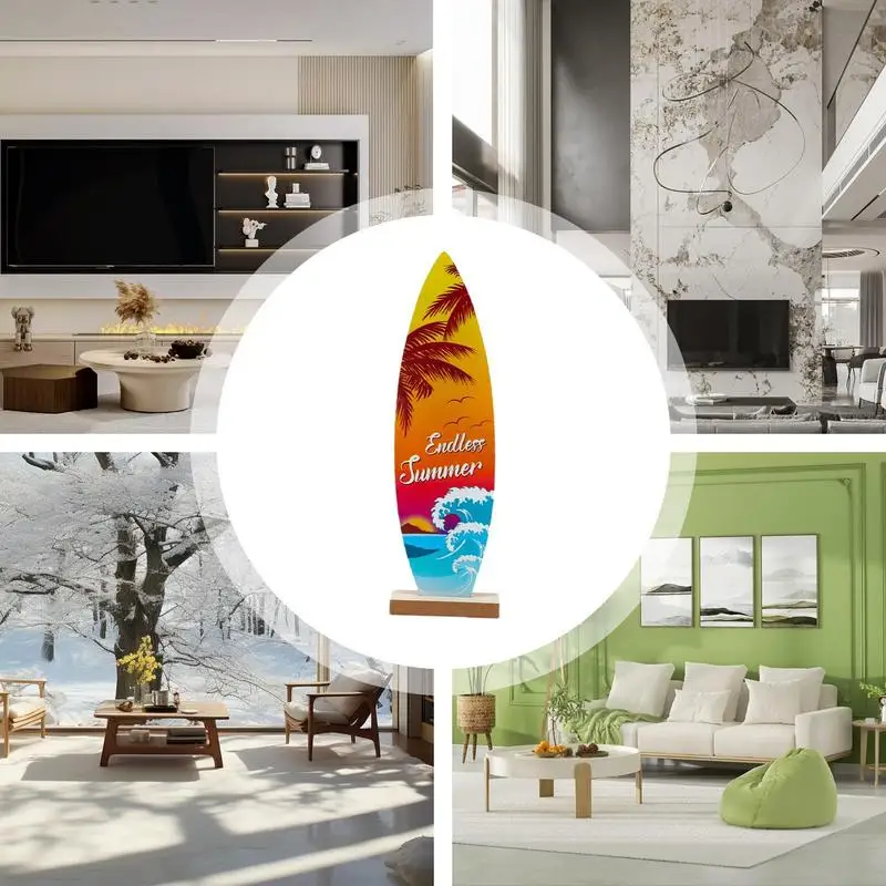 Tato letní dekorace ve tvaru surfového prkna okamžitě promění místnost, oslavu nebo letní party v pohodové místo s prázdninovou náladou. Pomůže oživit prázdnou stěnu, vytvořit stylovou party výzdobu a ušetří čas s řešením složitých dekorací. Díky kvalitnímu dřevu působí pevně, přirozeně a harmonizující.