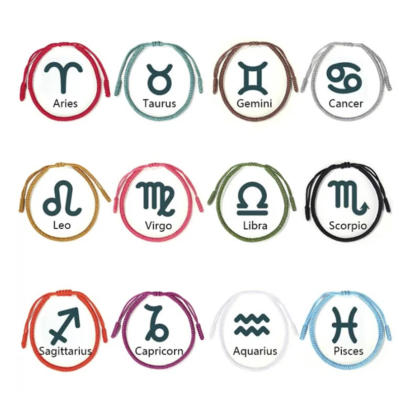 1× tibetský uzlový náramek se znamením zvěrokruhu, zabalený v ochranném obalu