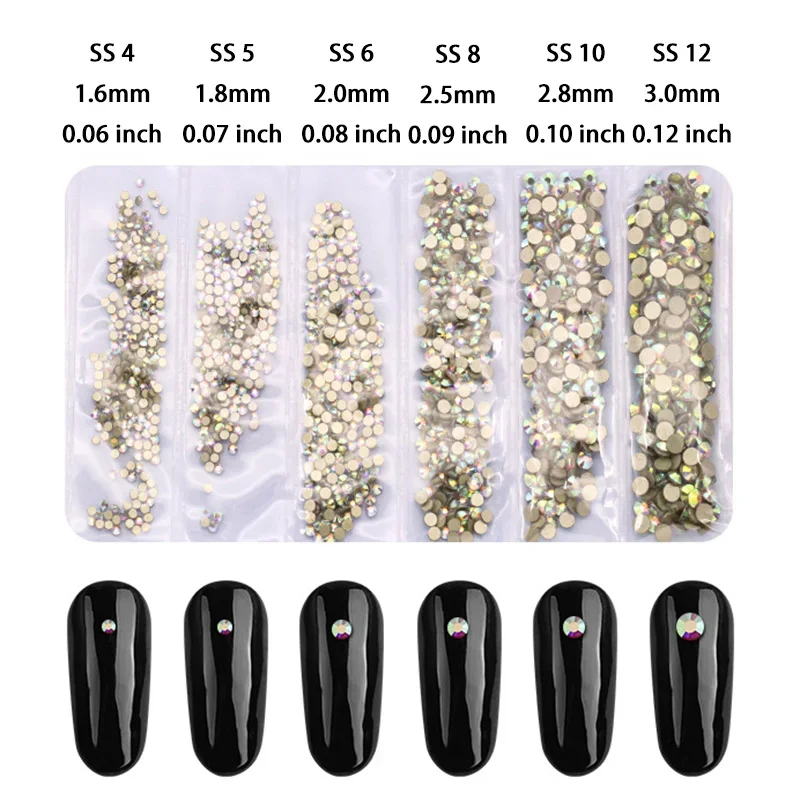 1× sada 1440ks skleněných kamínků na nehty ve 20 barvách
