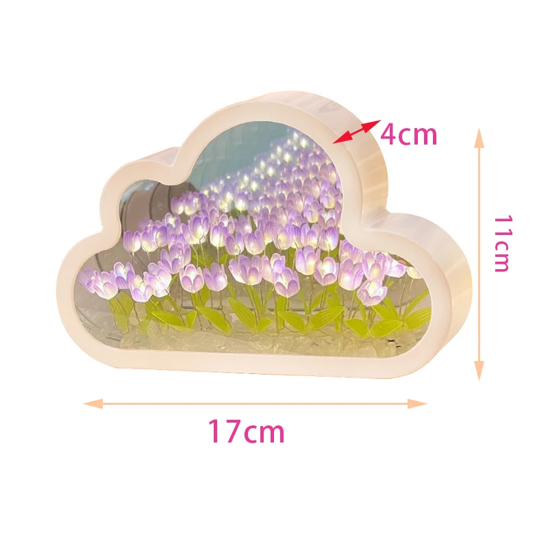 Noční lampa s tulipány a zrcadlovým efektem přináší nejen příjemné světlo, ale i krásnou dekorativní atmosféru do každé ložnice. Už žádné hledání zásuvky nebo příliš silné světlo – tato led lampička je na baterie a jemně rozjasní váš prostor bez rušení spánku. Ideální pro děti i dospělé. **Vyřeší problém s noční tmou, přidá kouzelný vzhled pokoji a navodí klidnou náladu.**