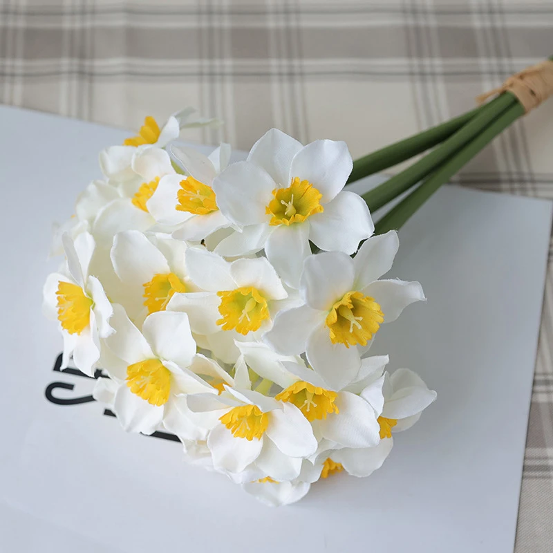 Tato umělá kytice narcisů přináší do interiéru svěžest a eleganci, aniž byste museli řešit zalévání, péči nebo rychlé uvadání. Díky své dlouhé životnosti a realistickému vzhledu nabízí dlouhotrvající krásu a bezstarostnou dekoraci, kterou si užijete každý den. Je to skvělý způsob, jak mít stále dokonalou stolní dekoraci a útulný domov.