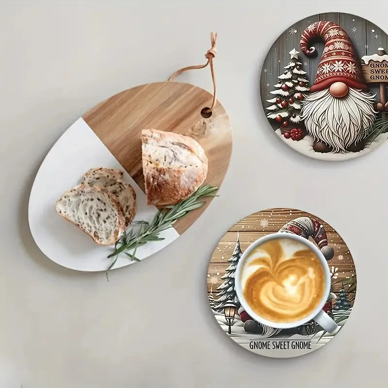 Tyto vánoční podtácky řeší skvrny od horkých hrnků, poškrábaný stůl i nevzhledné kroužky. Díky nim nemusíte řešit nepořádek ani složité čištění povrchu. Dřevěné podtácky s motivem vánočního skřítka zároveň fungují jako vánoční dekorace na stůl, která navodí klidnou sváteční atmosféru bez další práce.