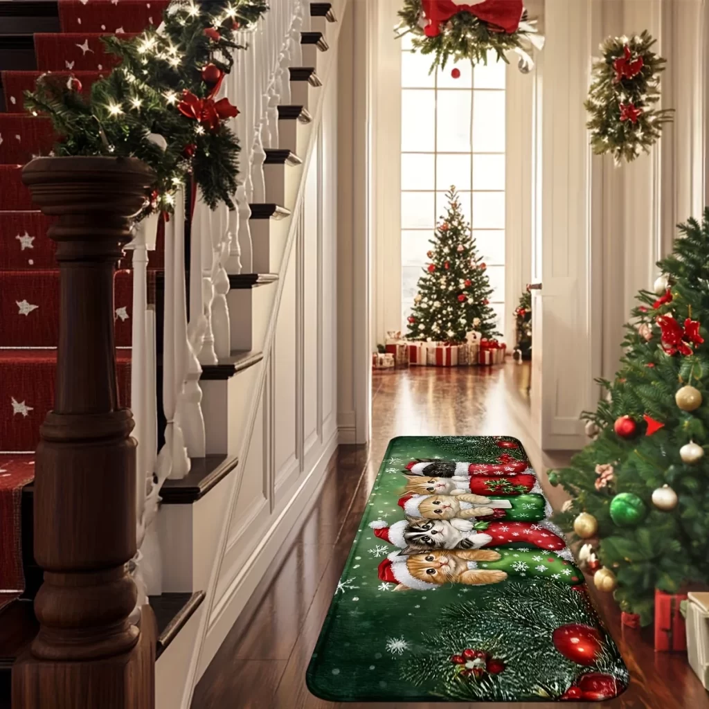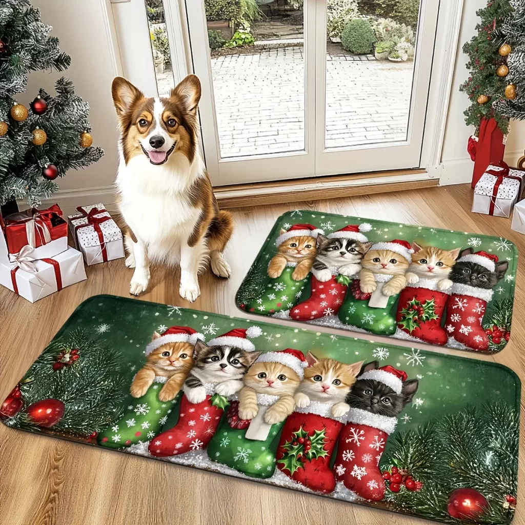 Tento vánoční koberec s koťaty okamžitě zútulní prostor a vytvoří příjemné místo pro rodinu i návštěvy. Díky měkkému koberci získáte pohodlí při chůzi i sezení a nemusíte řešit studenou podlahu. Dekorativní koberec navíc chrání podlahu a udržuje domov čistý a upravený během svátků.