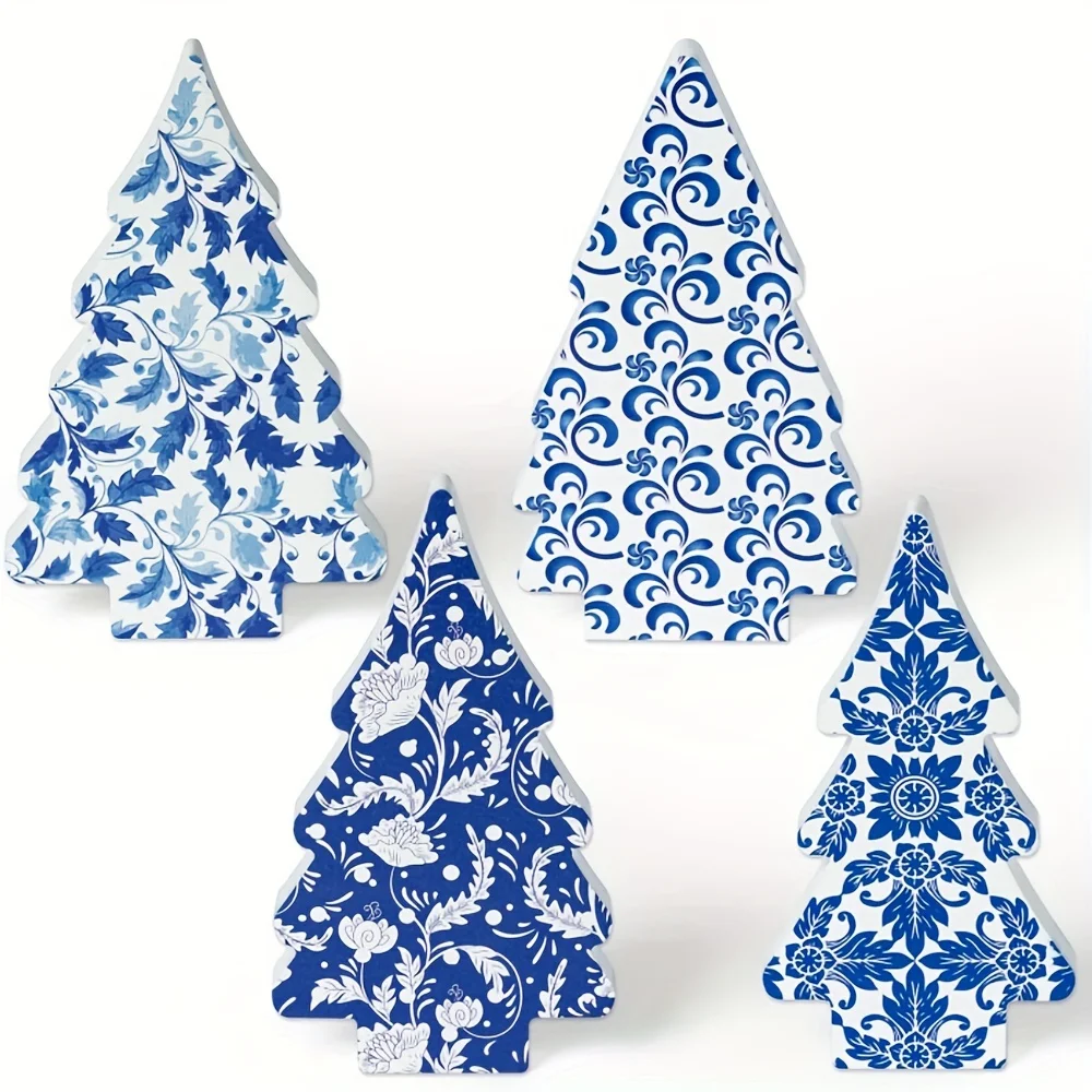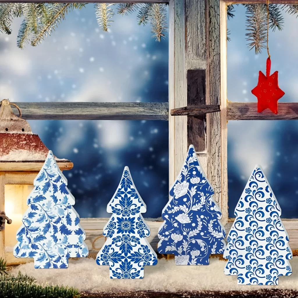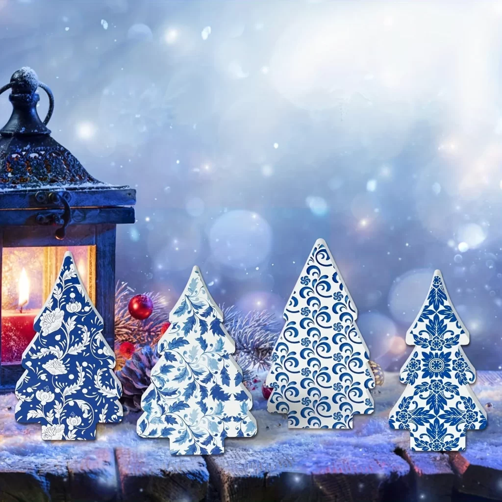 4× dřevěná stolní dekorace ve tvaru stromku