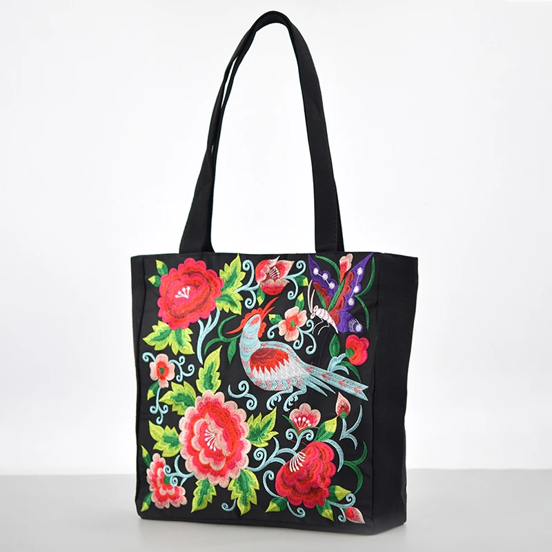 1× velká etno plátěná kabelka s květinovou výšivkou