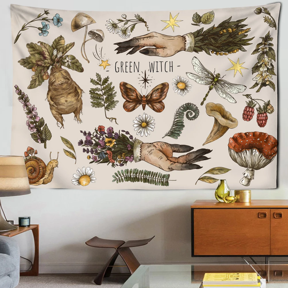 Přineste do svého domova záhadný styl s touto jedinečnou tapiserií. Nechte se okouzlit boho dekorací, která promění každý prostor v útulné a harmonické místo. Už nebudete muset přemýšlet, jak oživit prázdnou zeď – tato vintage houbová tapiserie vám poskytne řešení na míru. Skvěle se hodí nejen na stěny, ale i jako přehoz, plážová osuška či jogamatka.