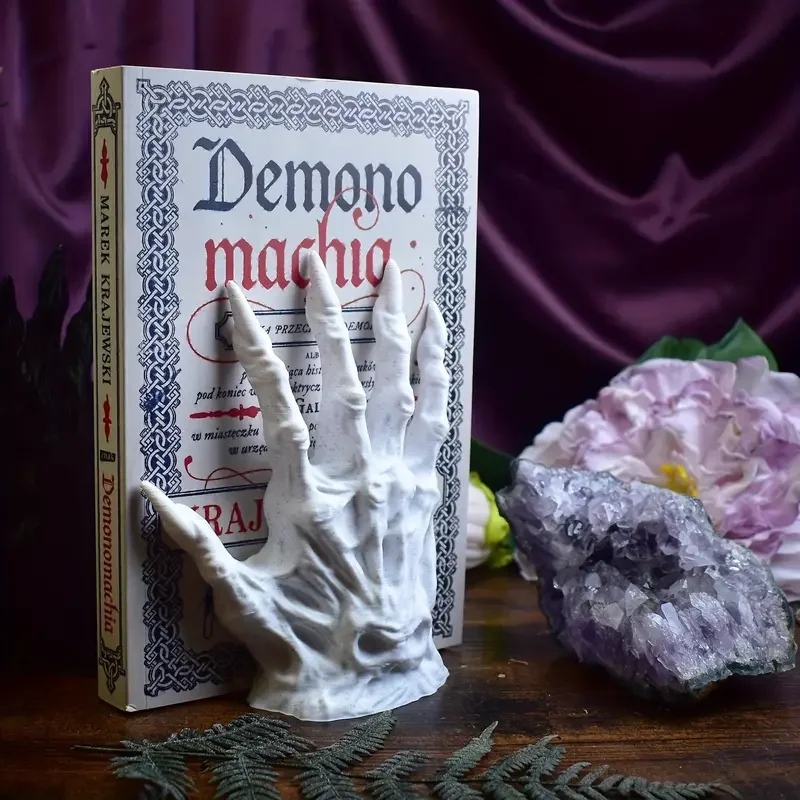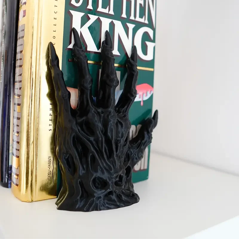 Tato zarážka na knihy ve tvaru démonické ruky udrží knihy rovně a zabrání jejich padání. Už žádné rozházené police ani ohnuté obálky. Slouží jako držák na knihy, který je stabilní a zároveň jako výrazná dekorace. Díky ní získáte pořádek i styl bez složité instalace.